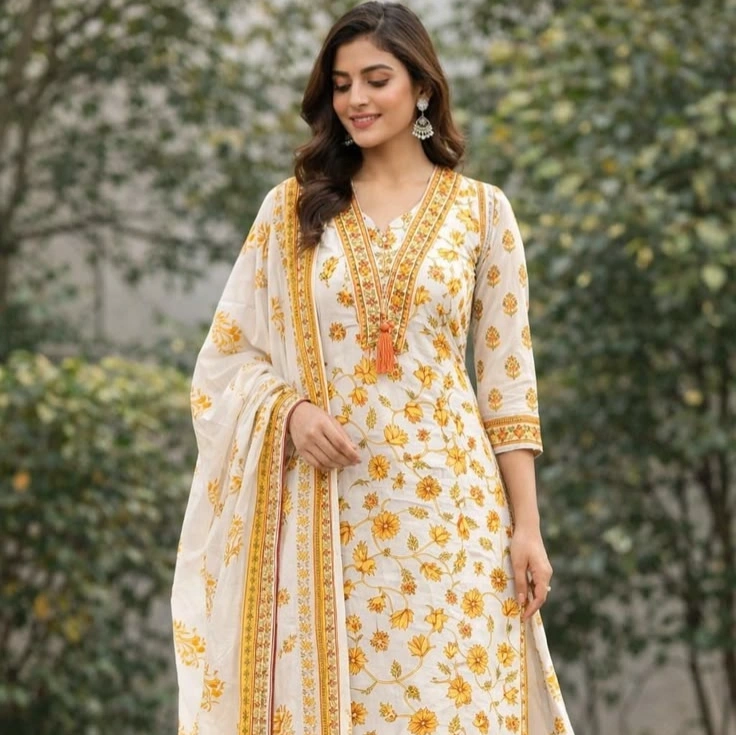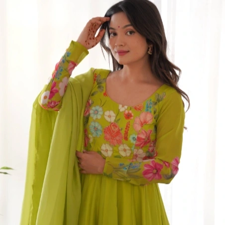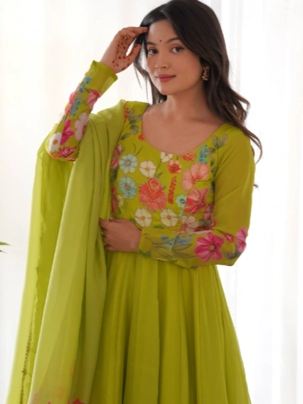 Yellow Floral Long Anarkali set