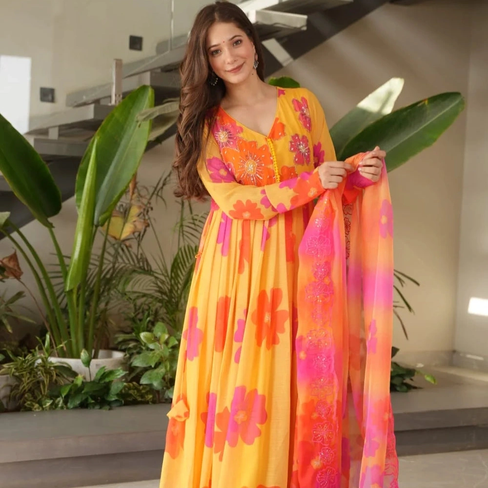 Mustard Yellow Handwork GaunSet