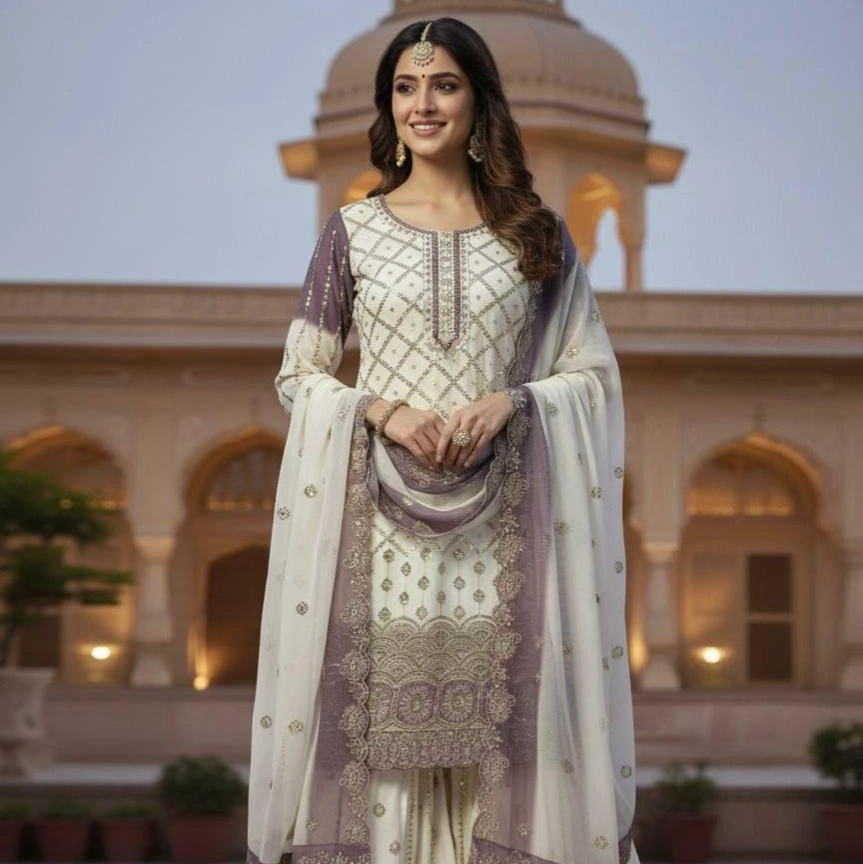 Elegant Ivory & Offwhite Designer Kurtha Set