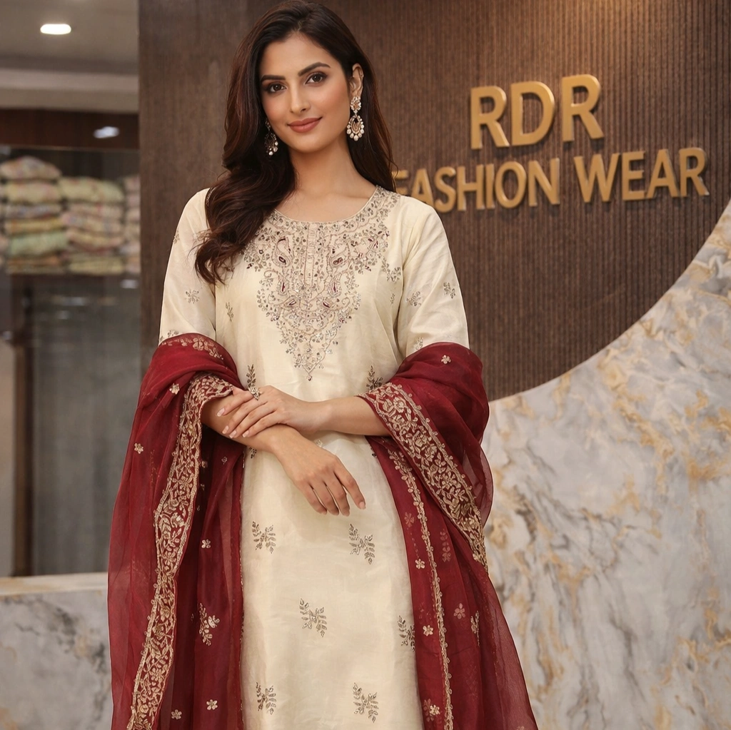 Elegant Off-White Embroidered Kurta Set with Dupatta