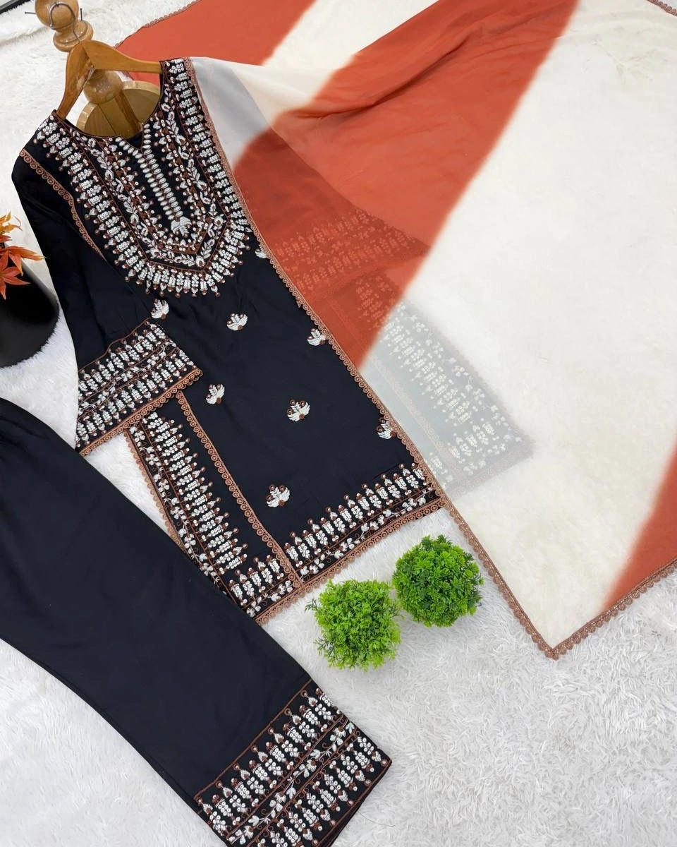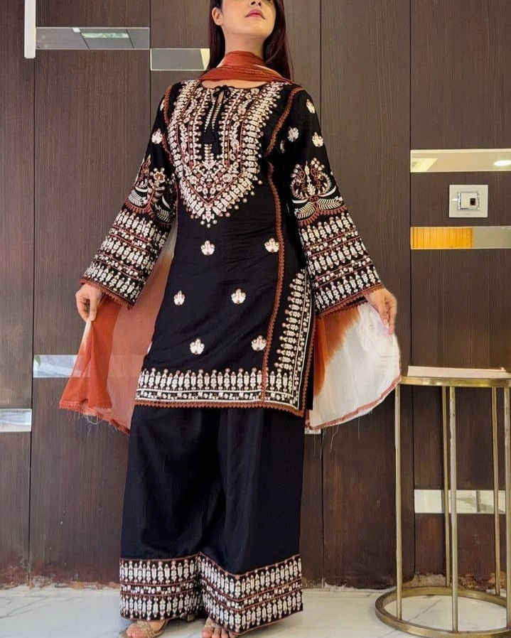 Product Name: Black Heavy Embroidered Party Wear Suit Set