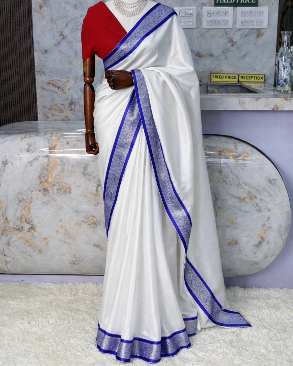 Traditional Silver Zari Weaving with Rich Blue Border Design
