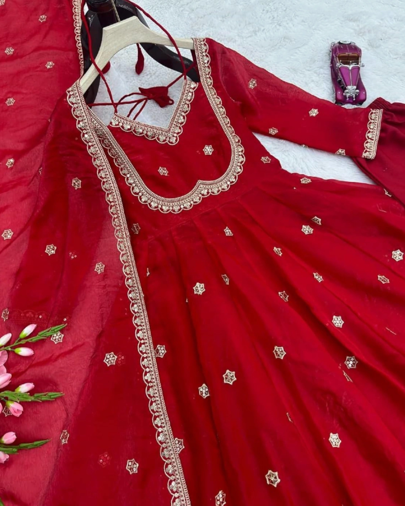 Product Name: Maroon Elegance Zari-Worked Anarkali Set