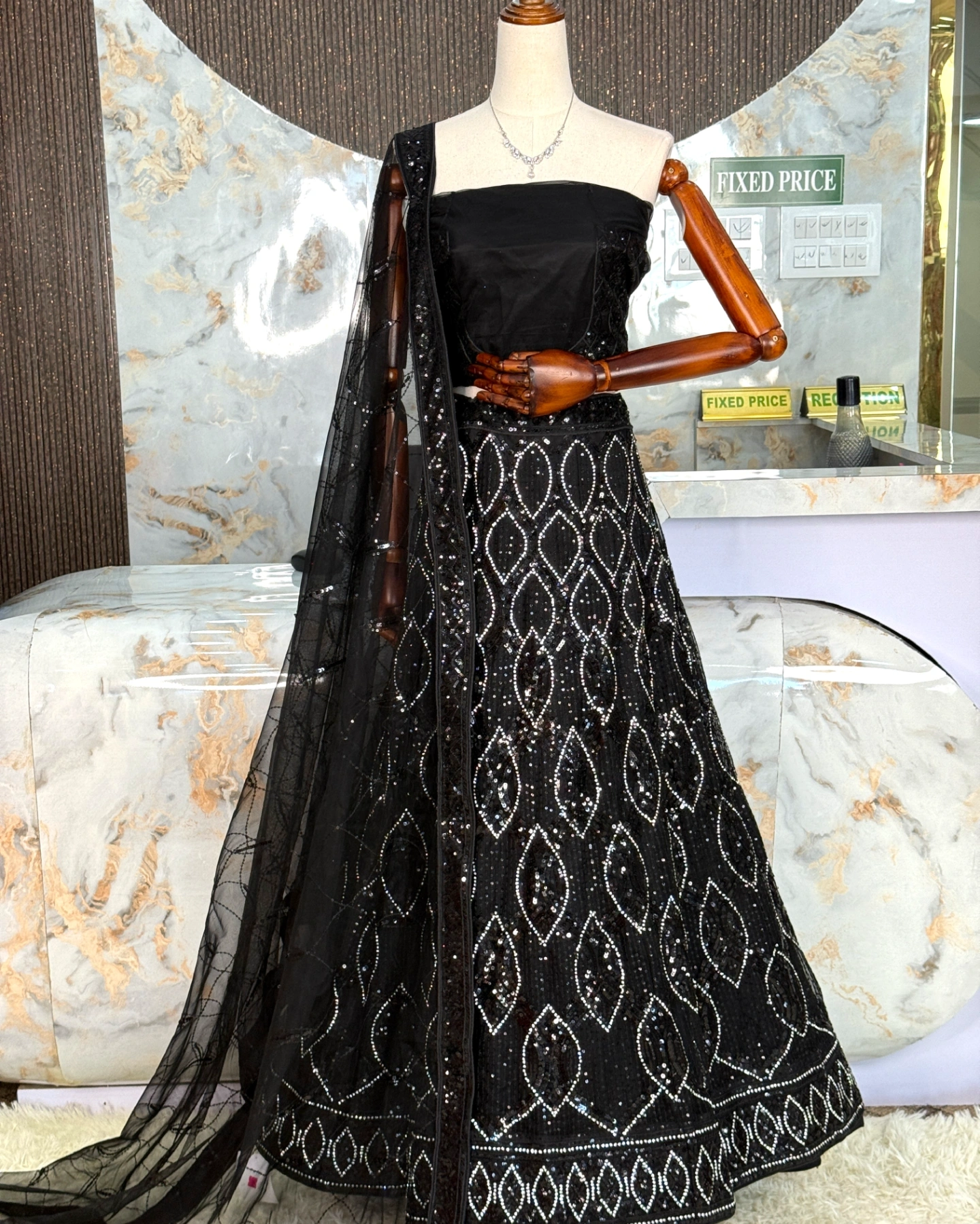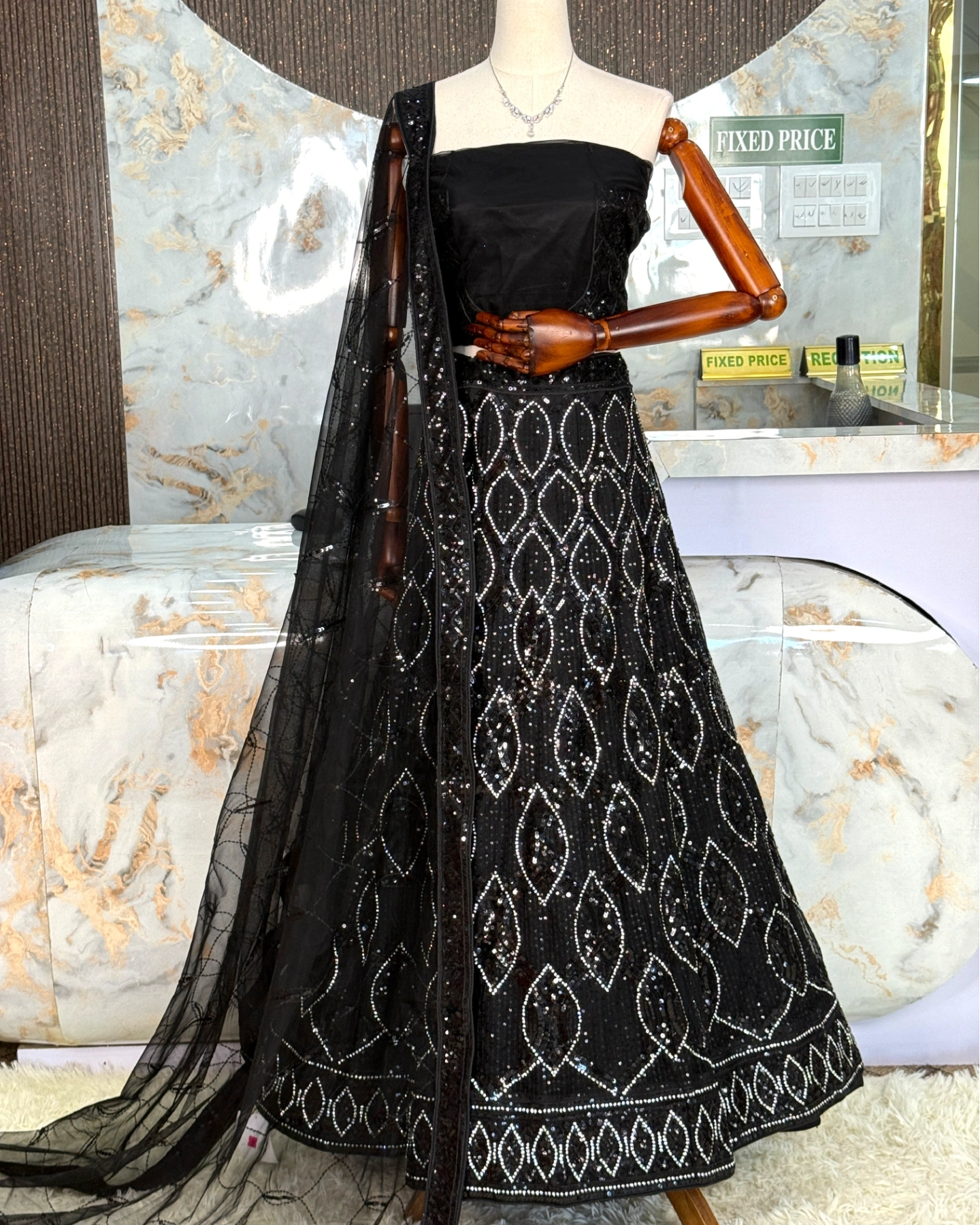 Product Name: Elegant Black Sequin Designer Semi-Stitched Lehenga Set