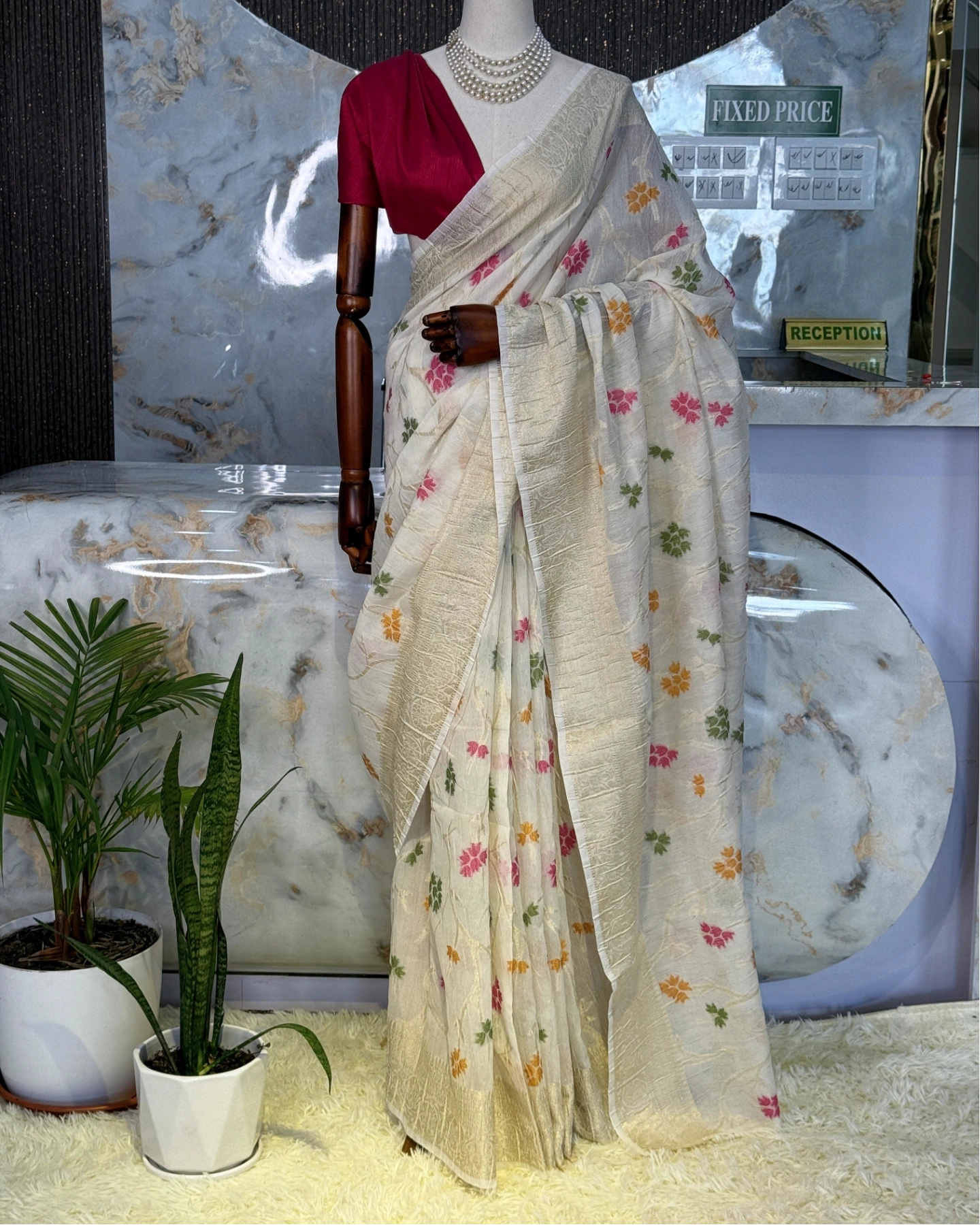 Elegant Cream Floral Designer Saree