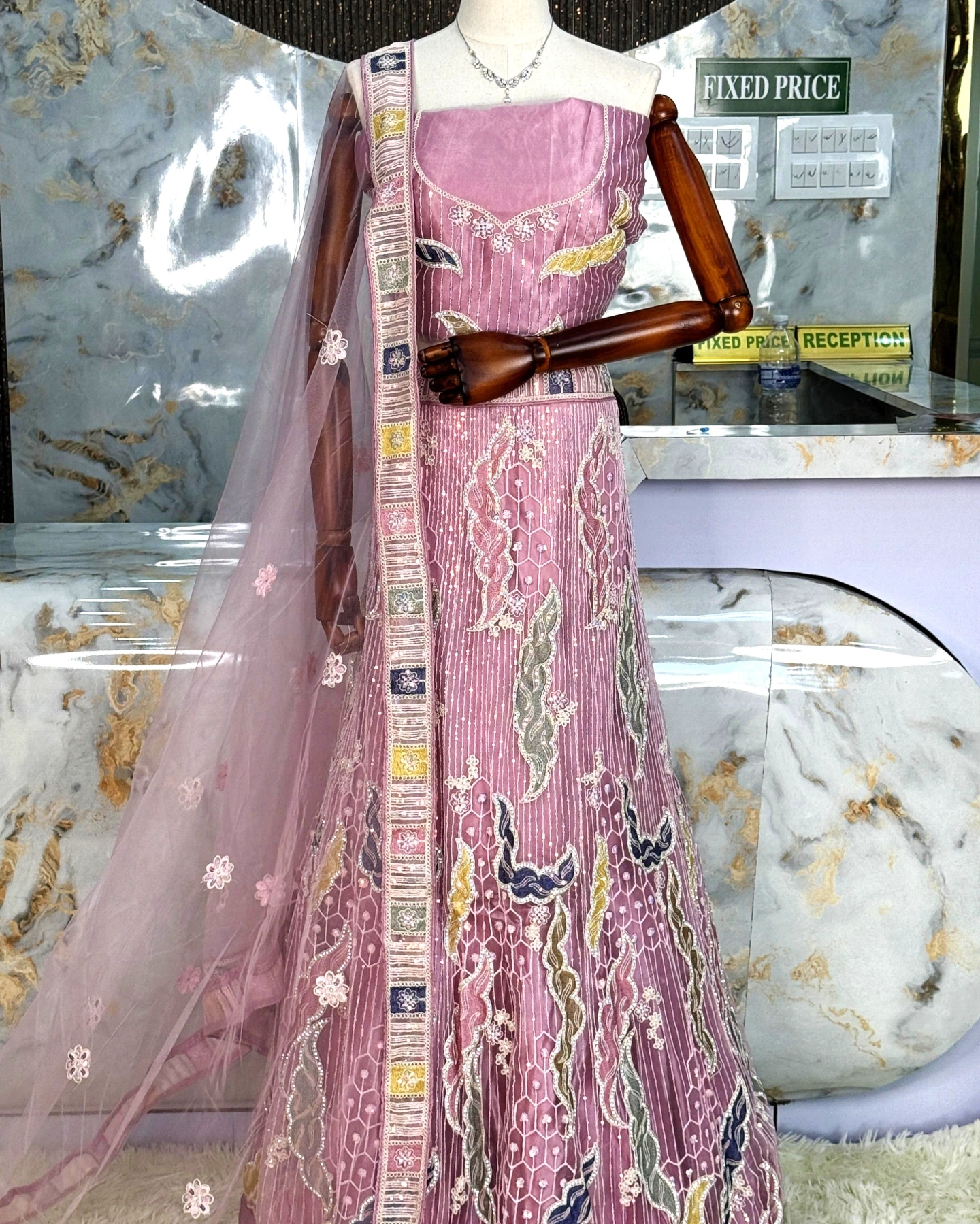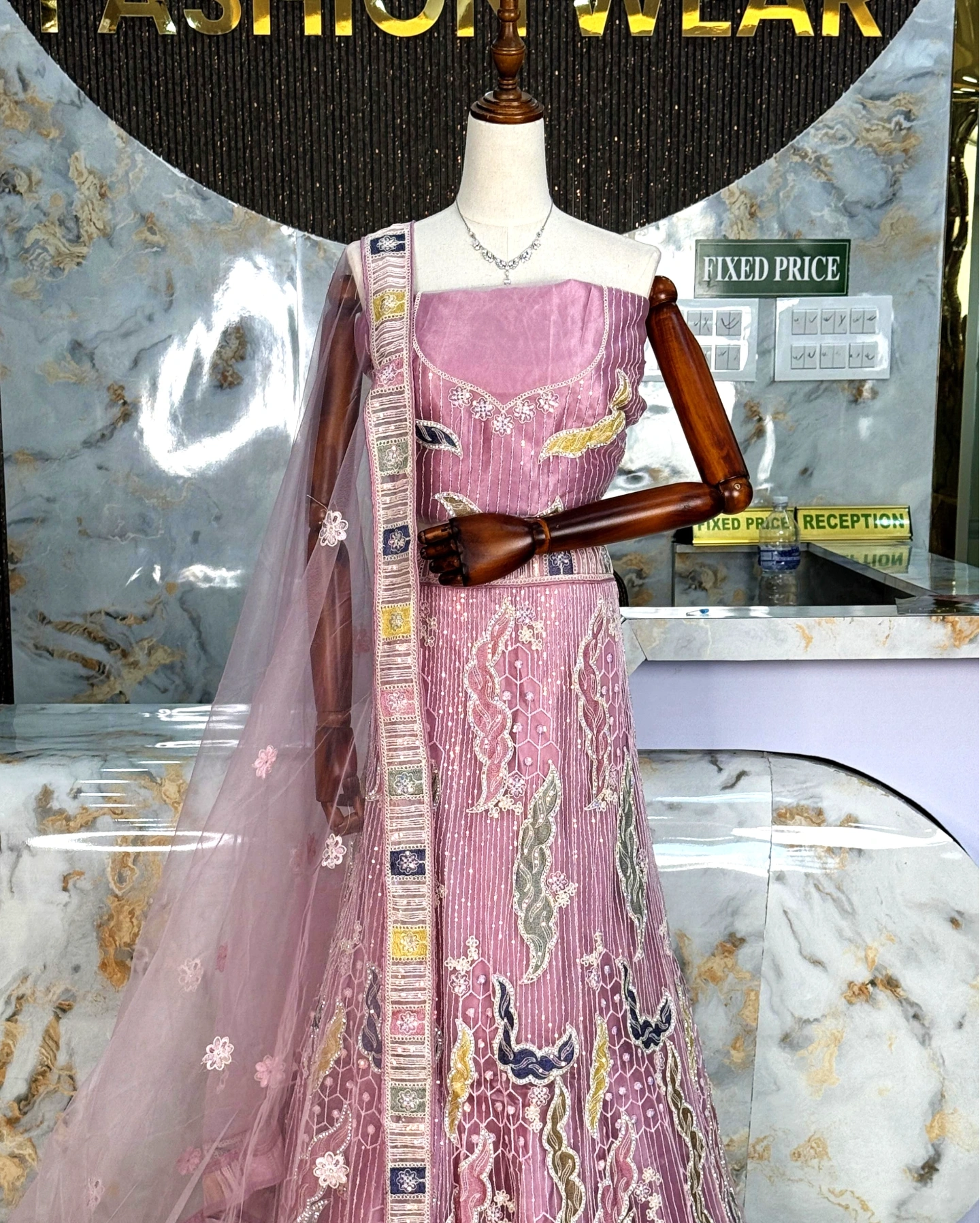 Product Name: Elegant Dusty Rose Semi-Stitched Lehenga Set