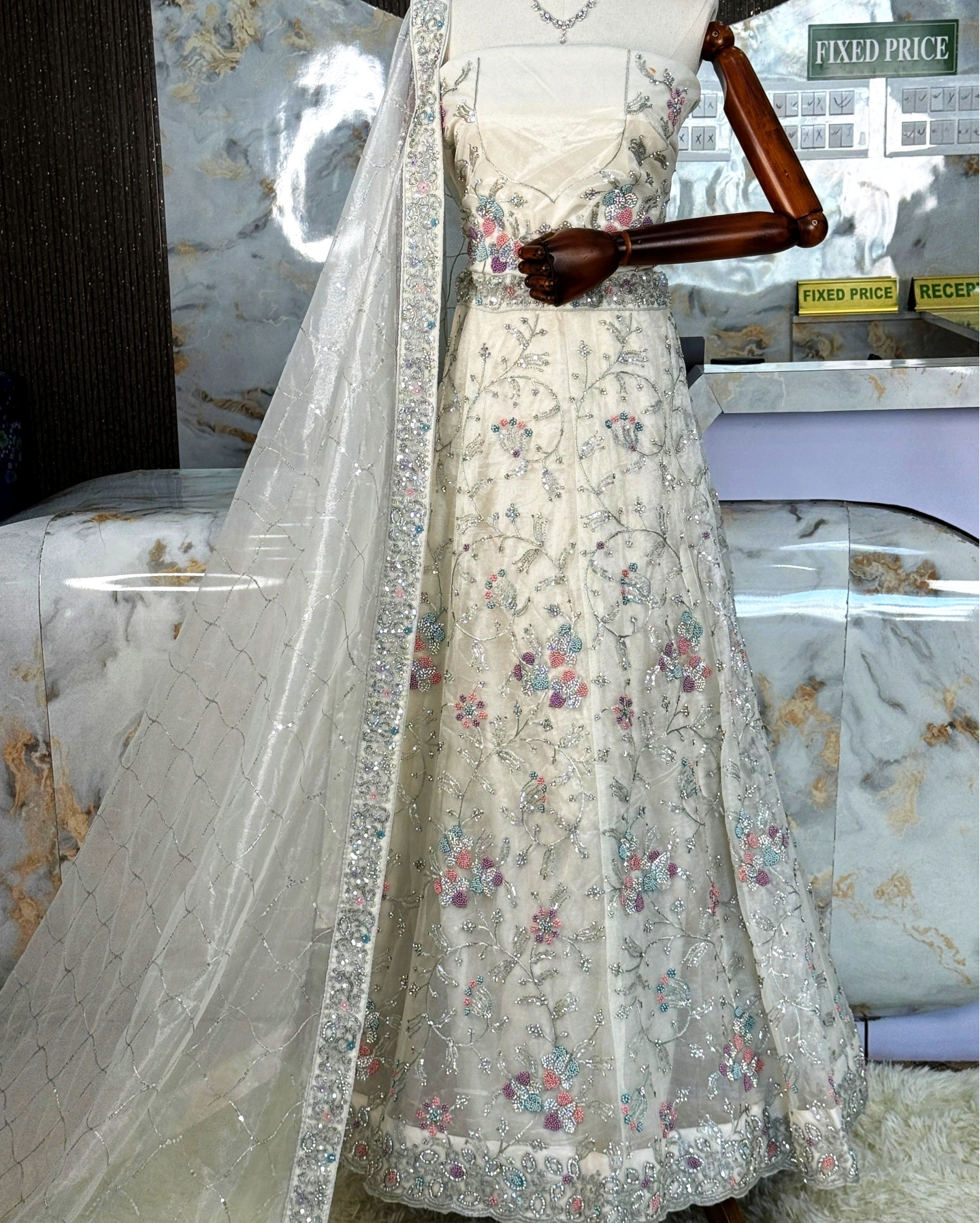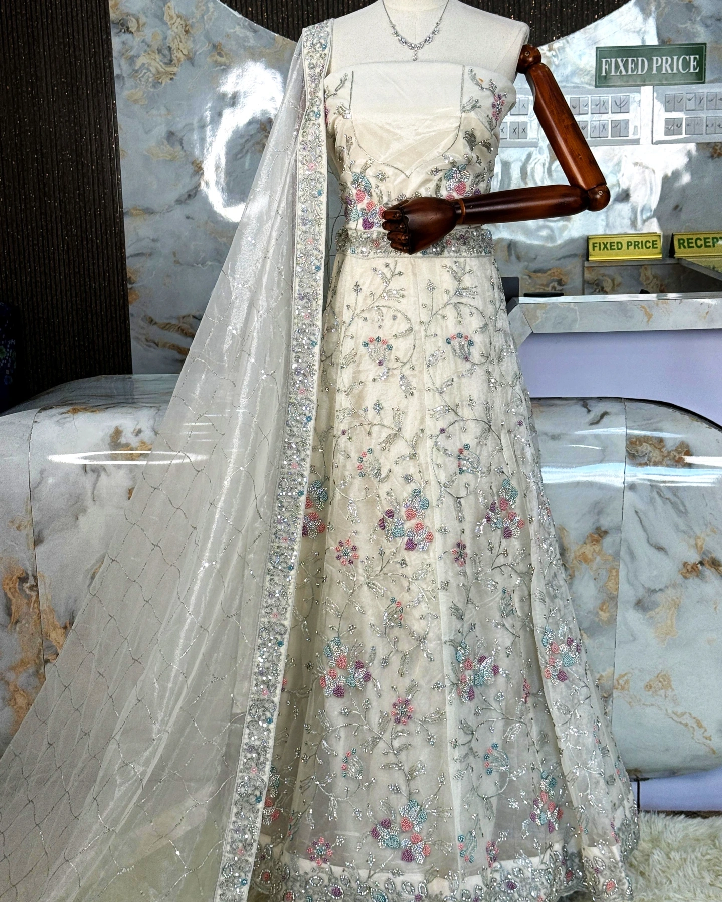 • Lehenga – Premium Net with Heavy Thread & Sequin Embroidery