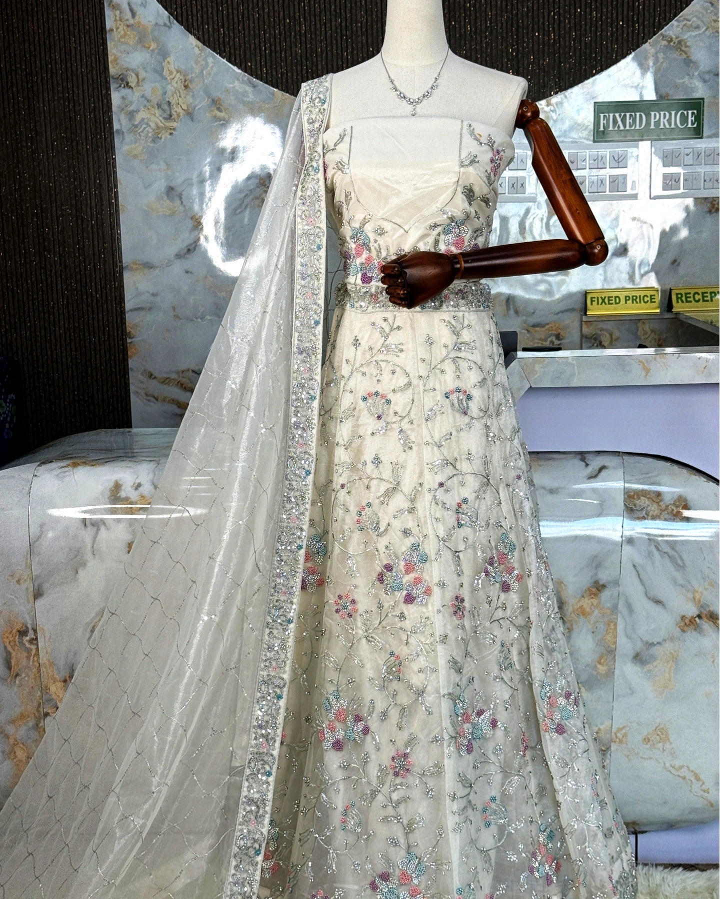 • Dupatta – Soft Net with Detailed Stone & Thread Work Border
