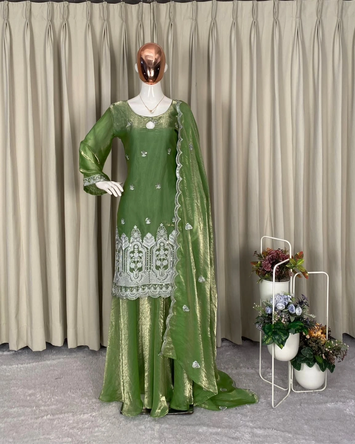 Kurti: Premium Shimmer Organza/Silk Blend