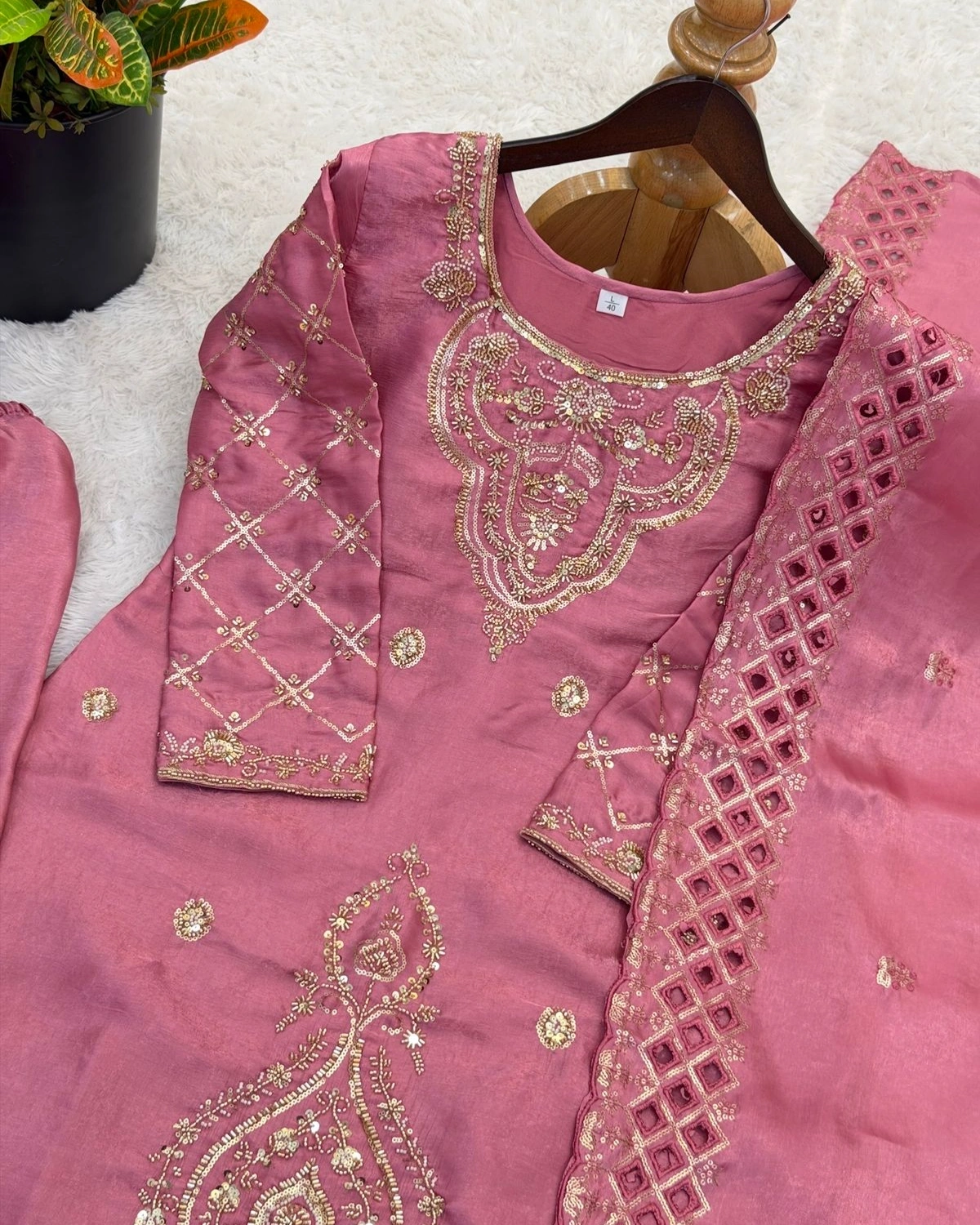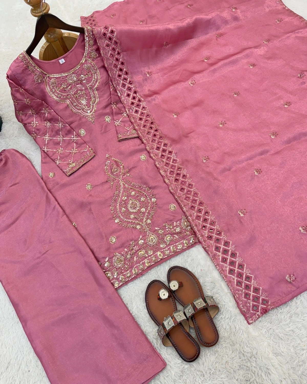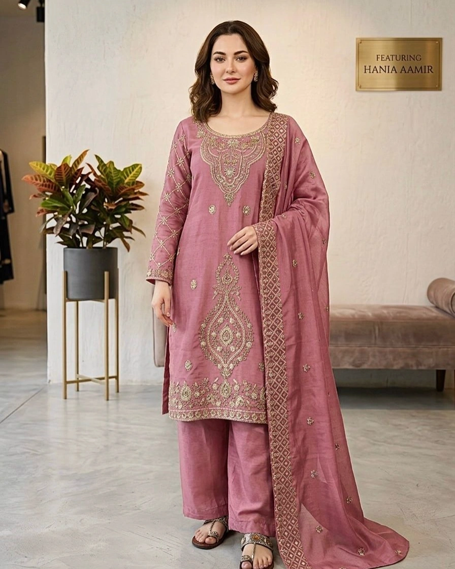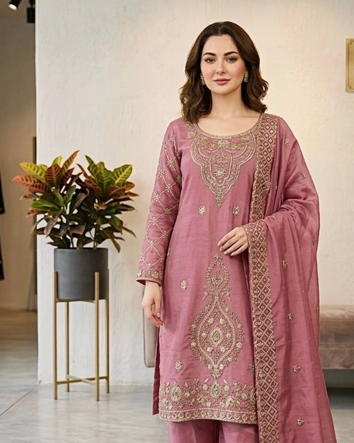 Soft & stylish pink ethnic suit set
