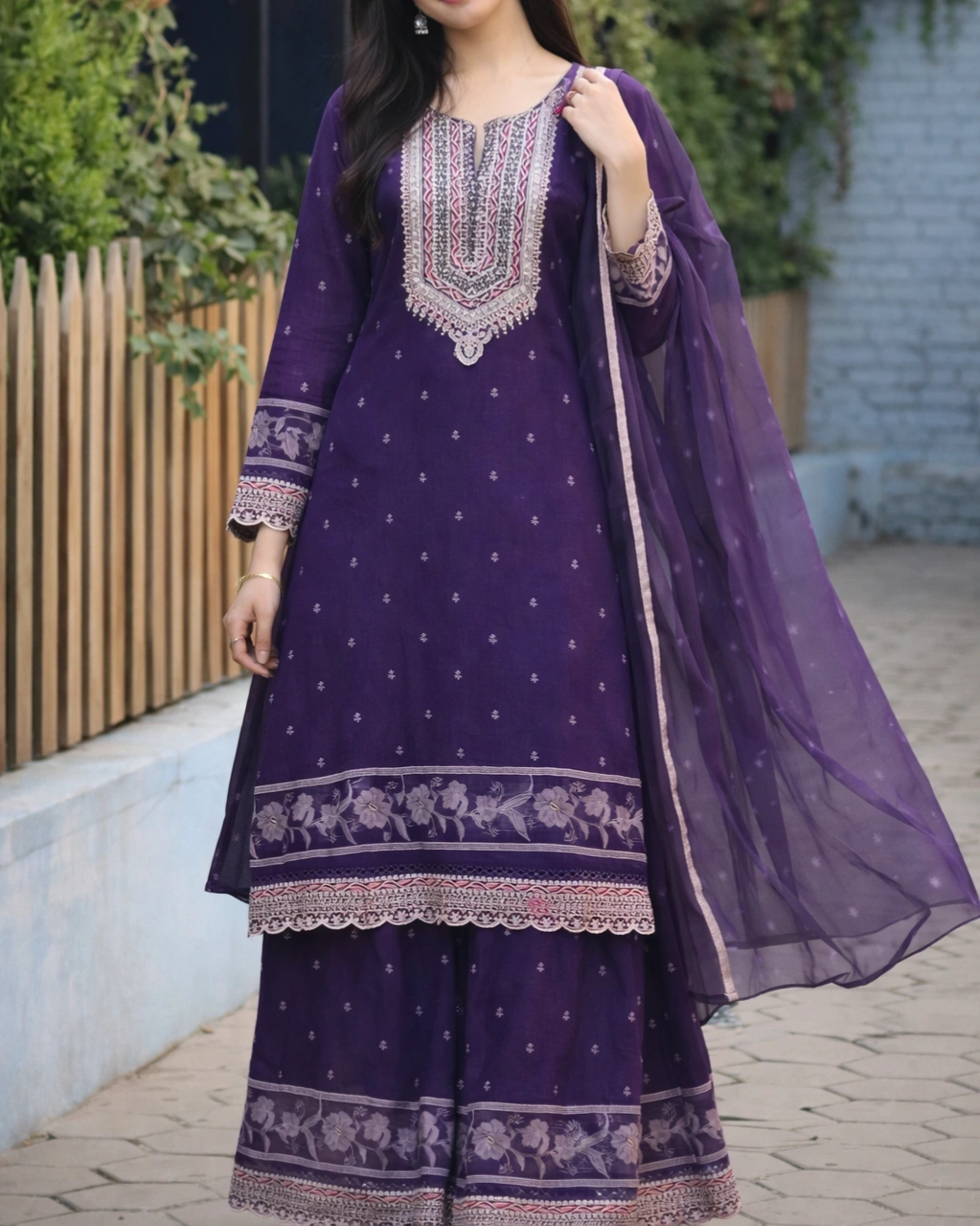Wash: Gentle Hand Wash or Dry Clean Only (To maintain embroidery and fabric softness)