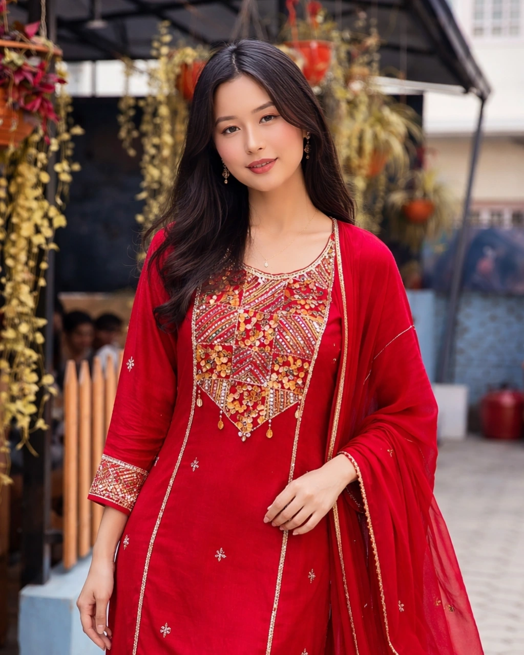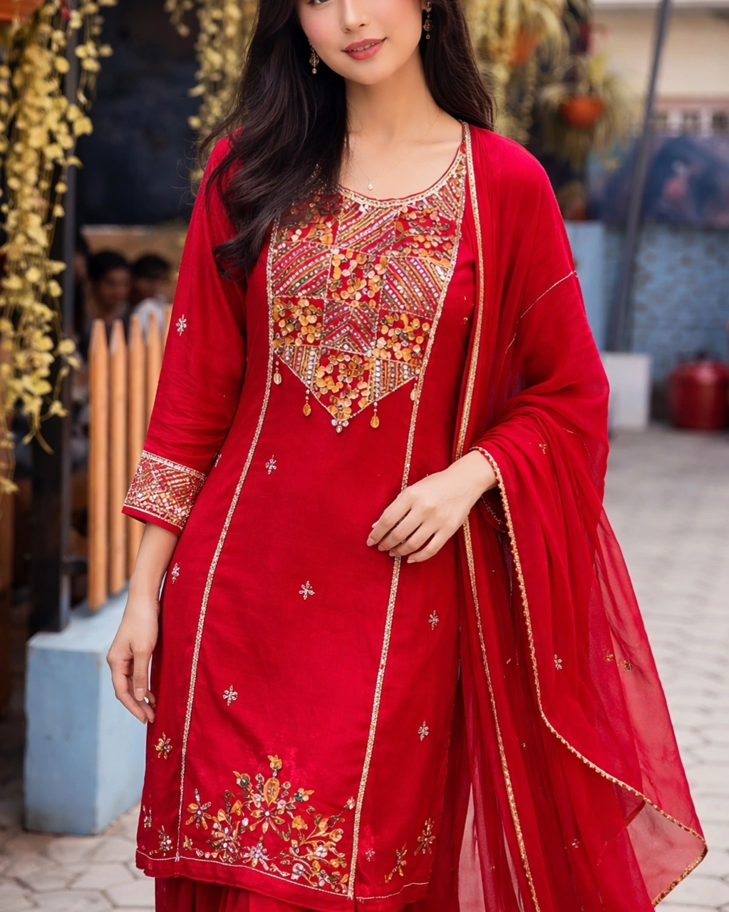 Product Name: Elegant Red Embroidered Kurta Set