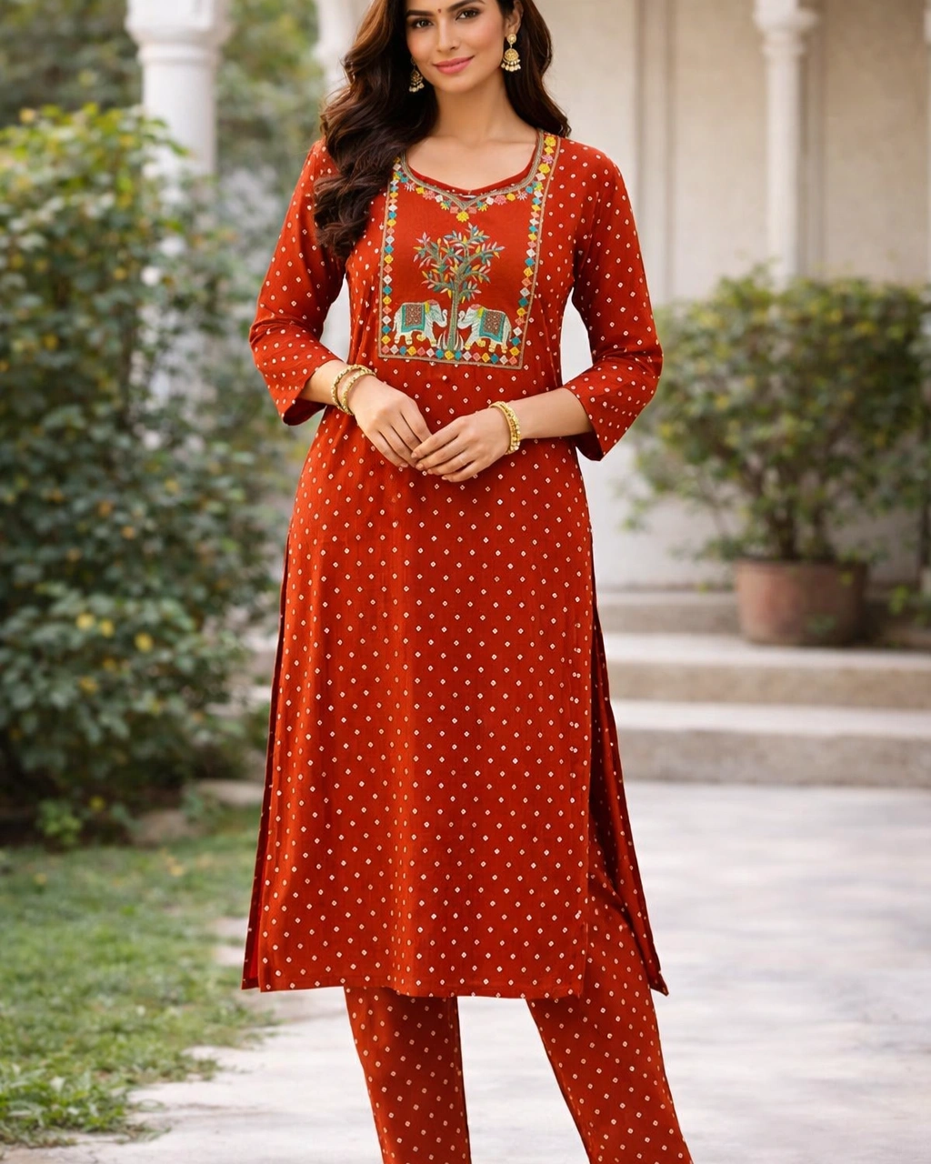 Product Name: Elegant Rust Orange Printed Kurta Set