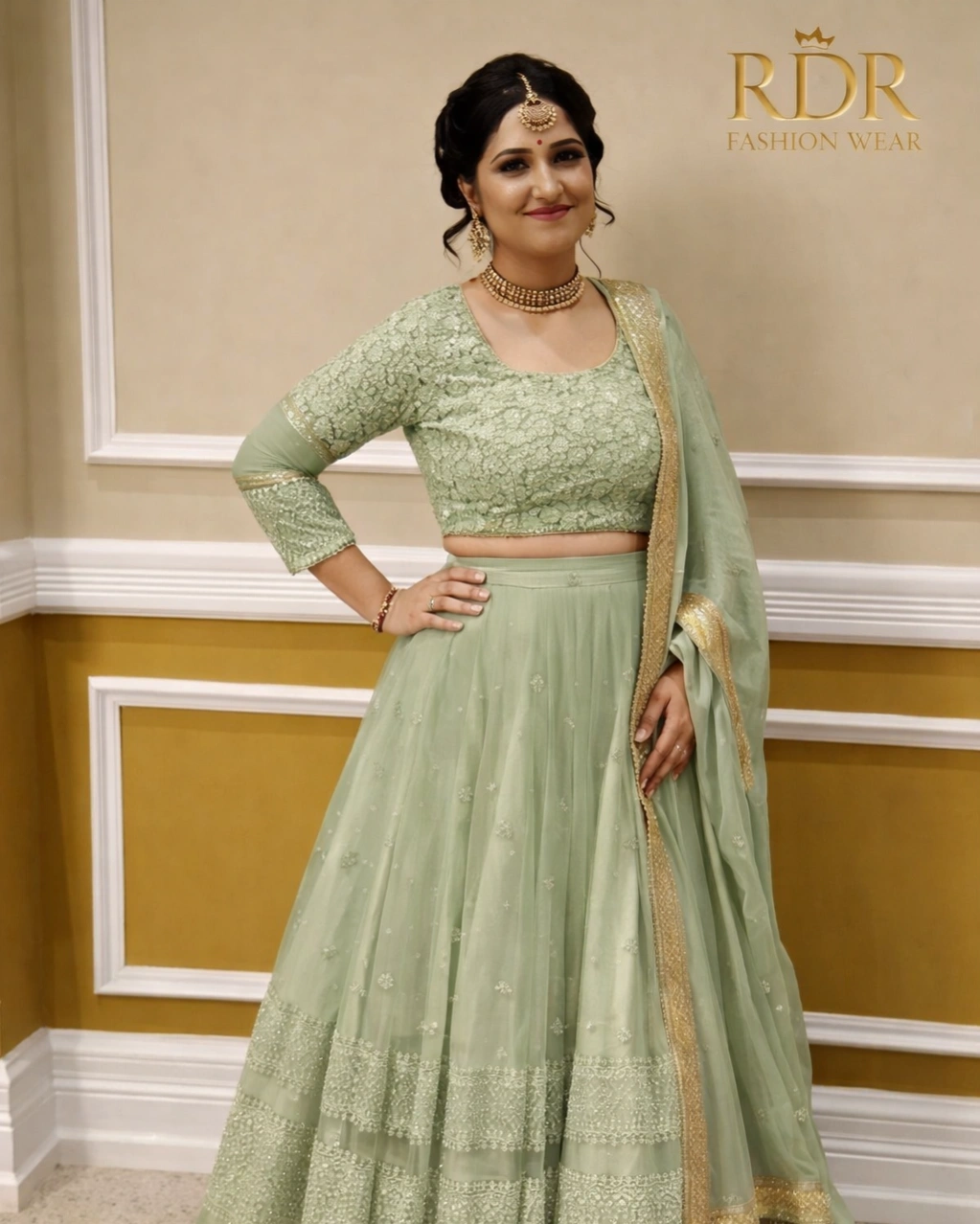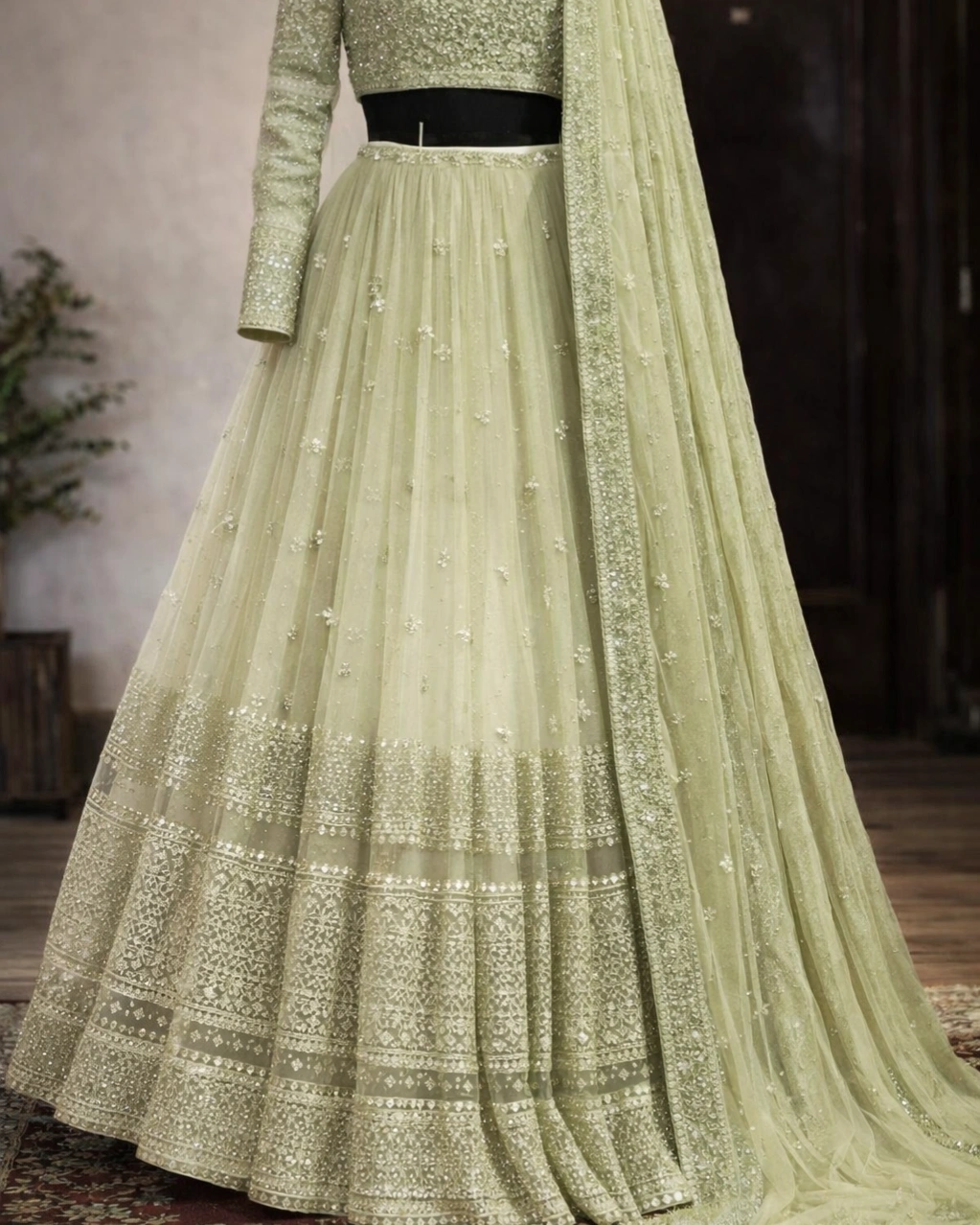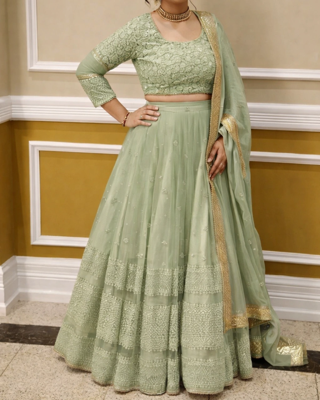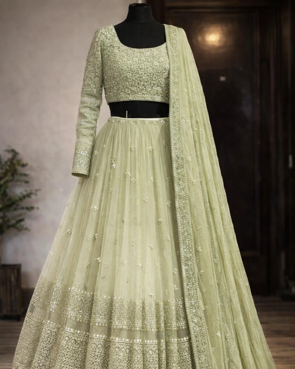 Pastel Pistachio Green Designer Semi Stitched Lehenga Set