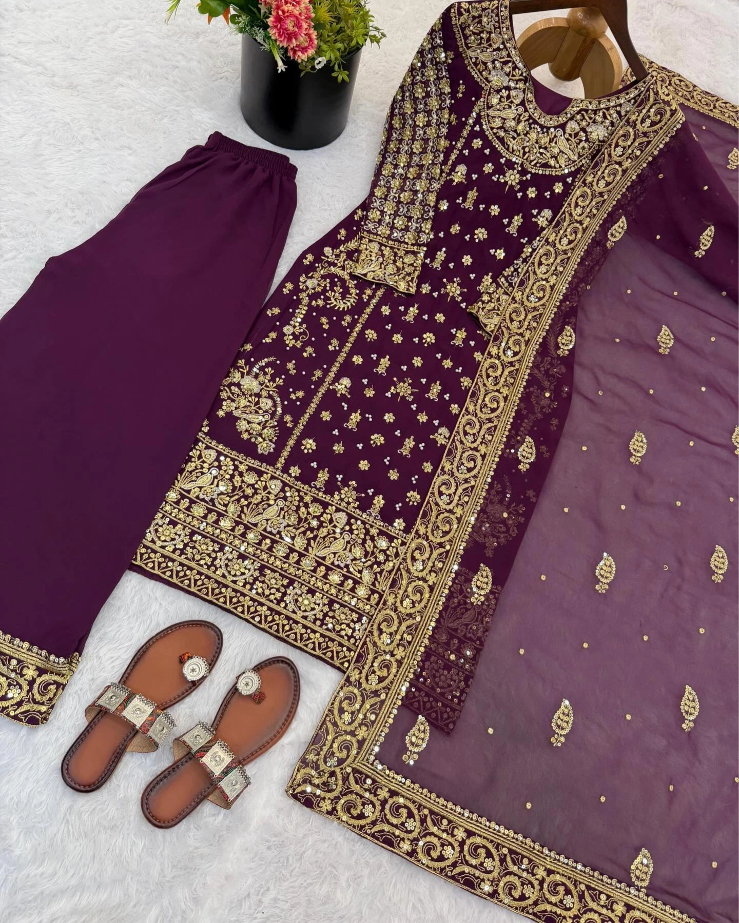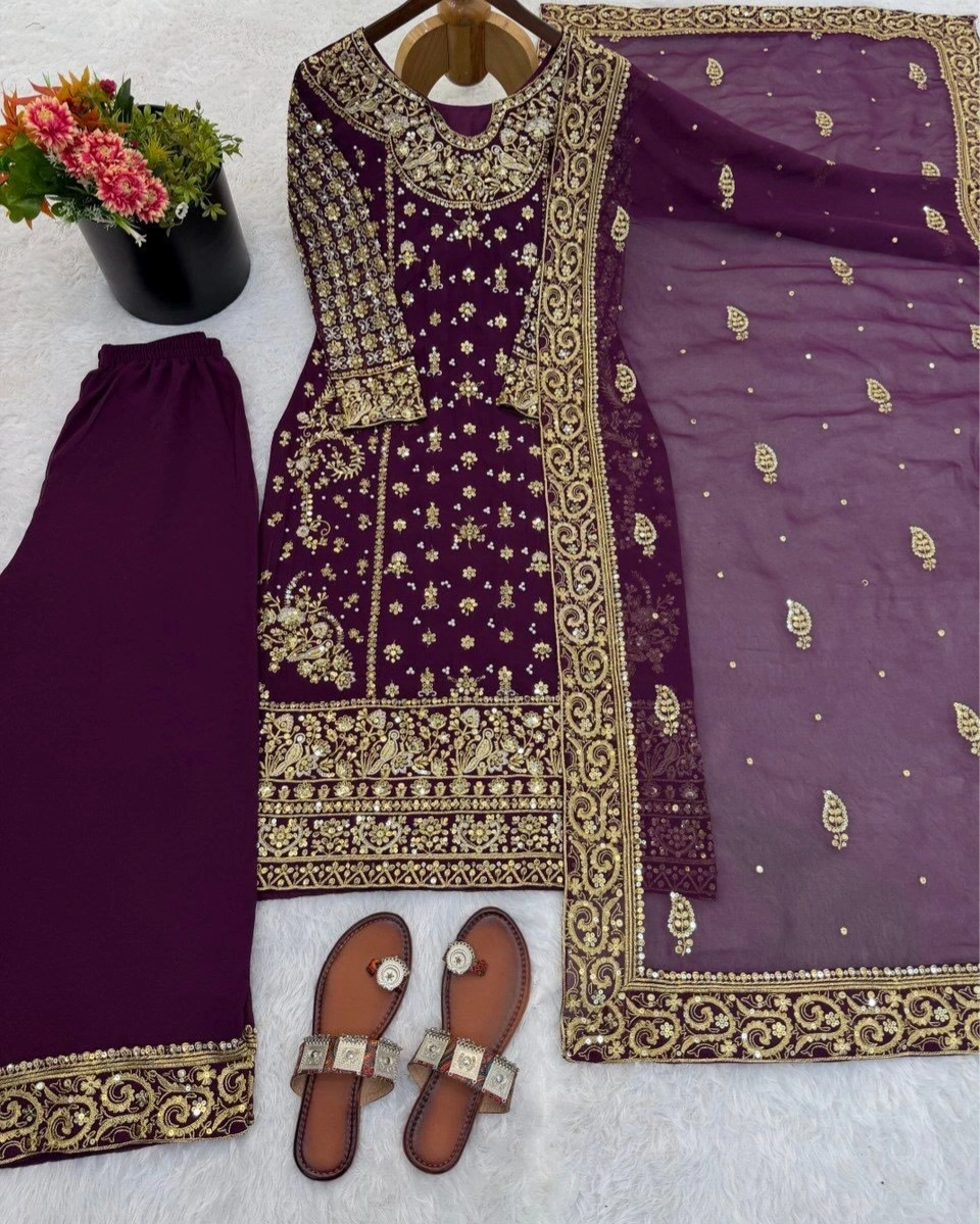 Product Name: Royal Wine Zari-Work Heavily Embroidered Suit Set