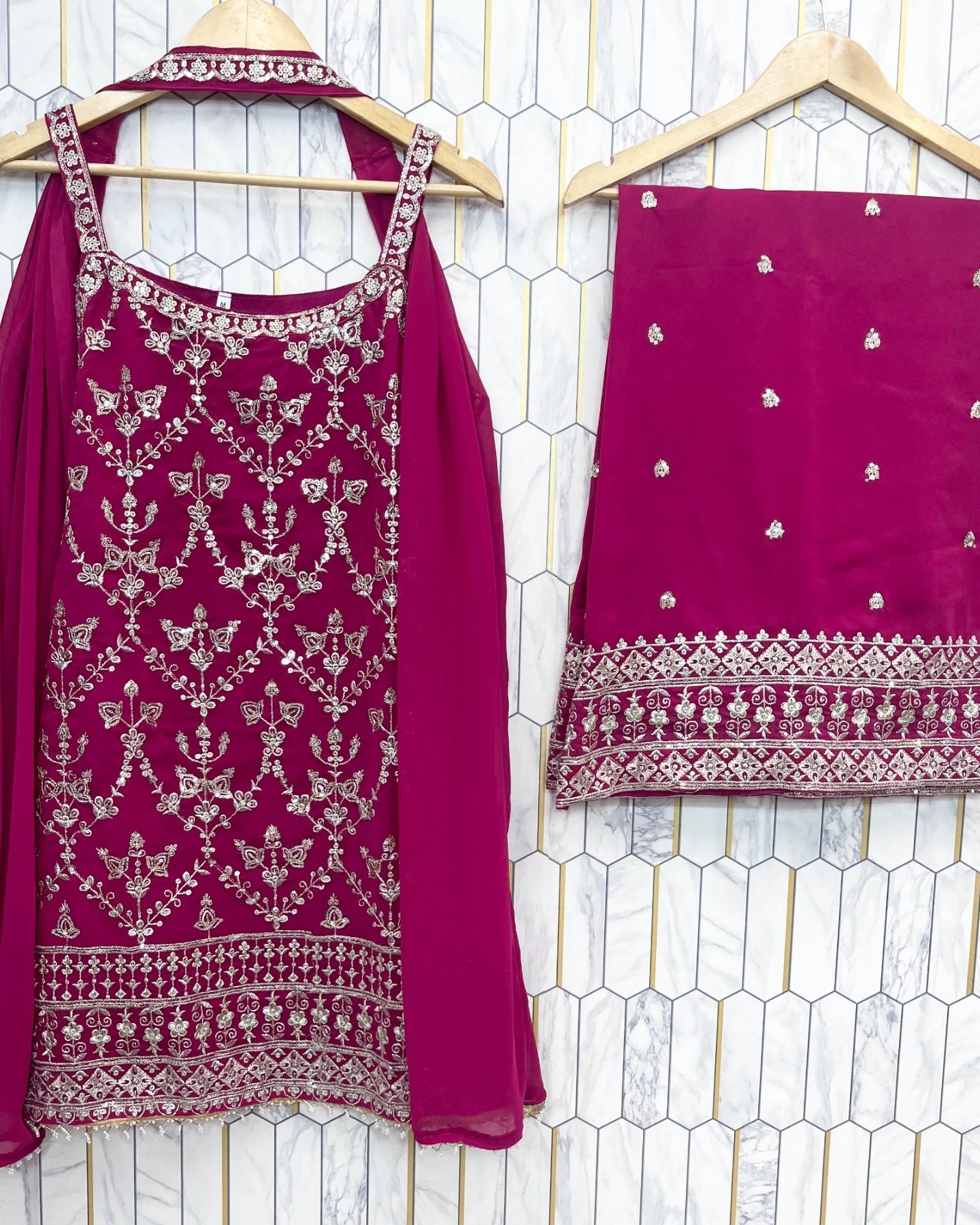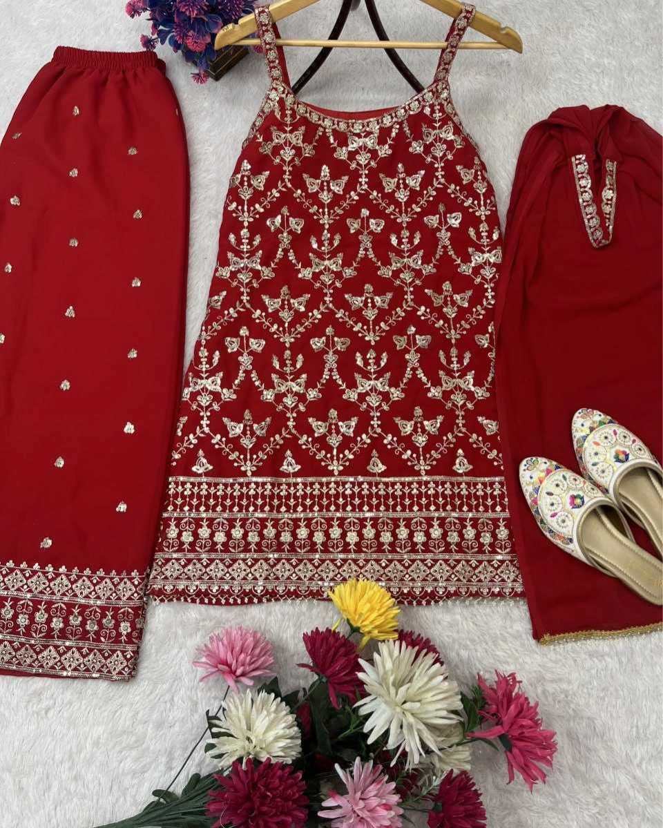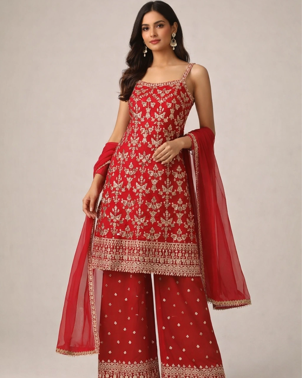 Product Name: Classic Red Heavy Embroidered Palazzo Set