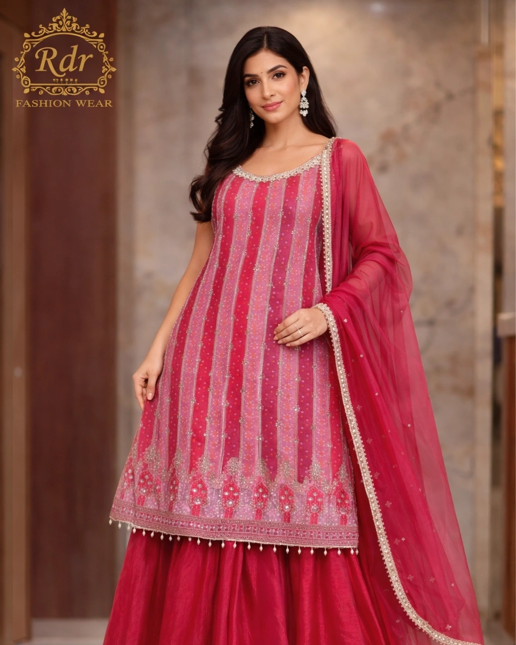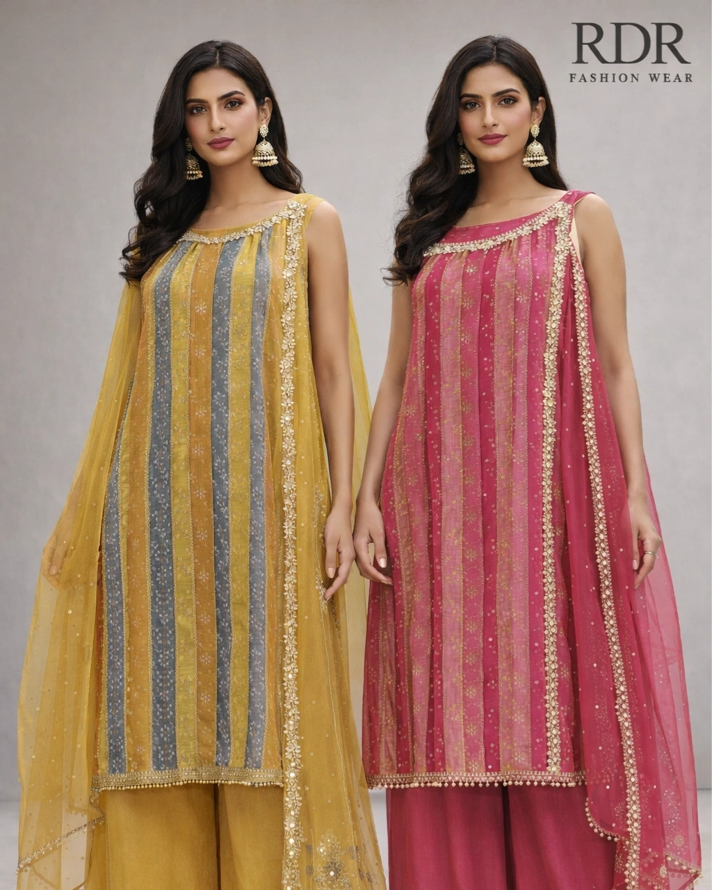 Product Name: Elegant Stripe Designer Palazzo Set (Mustard & Rose Pink Collection)