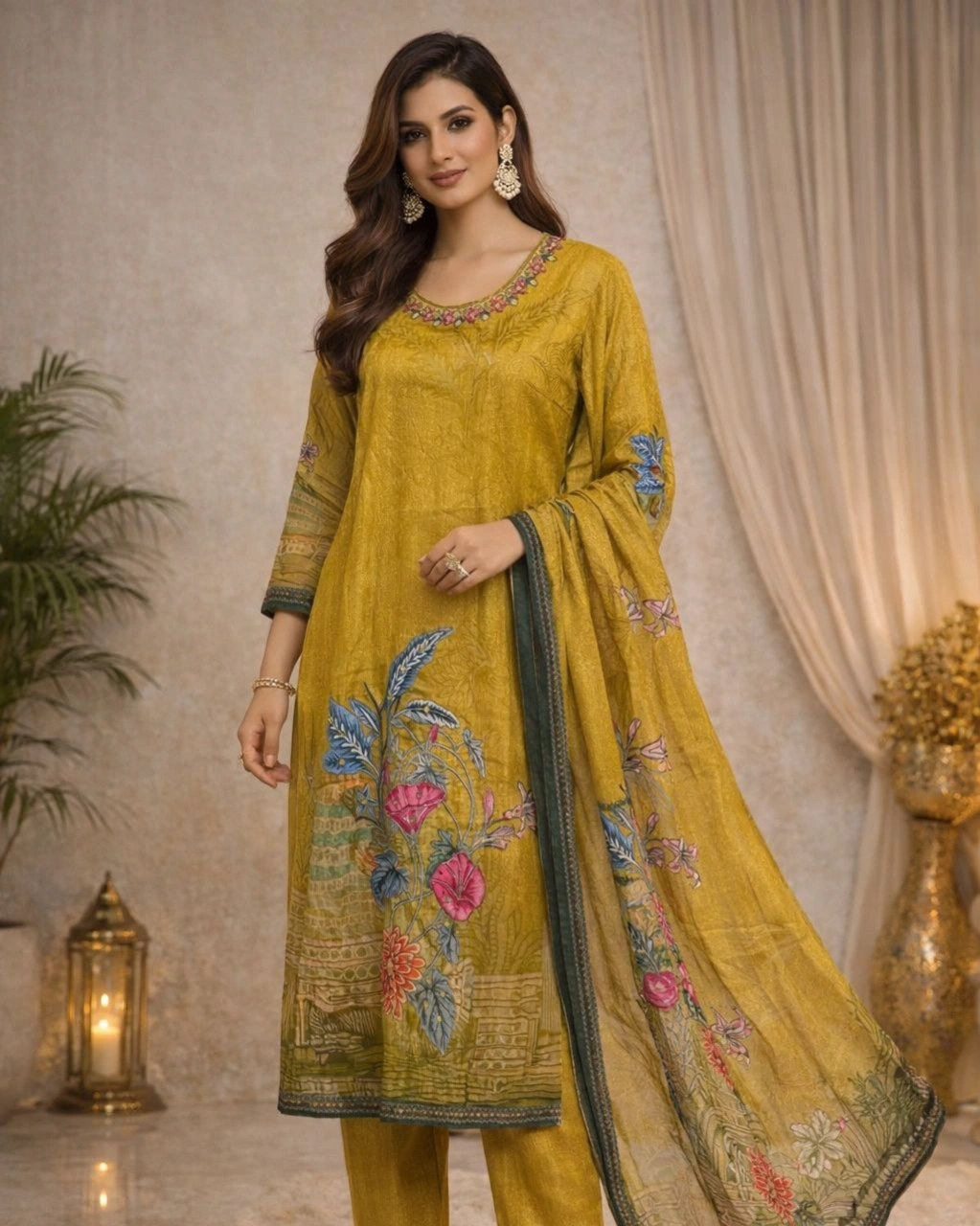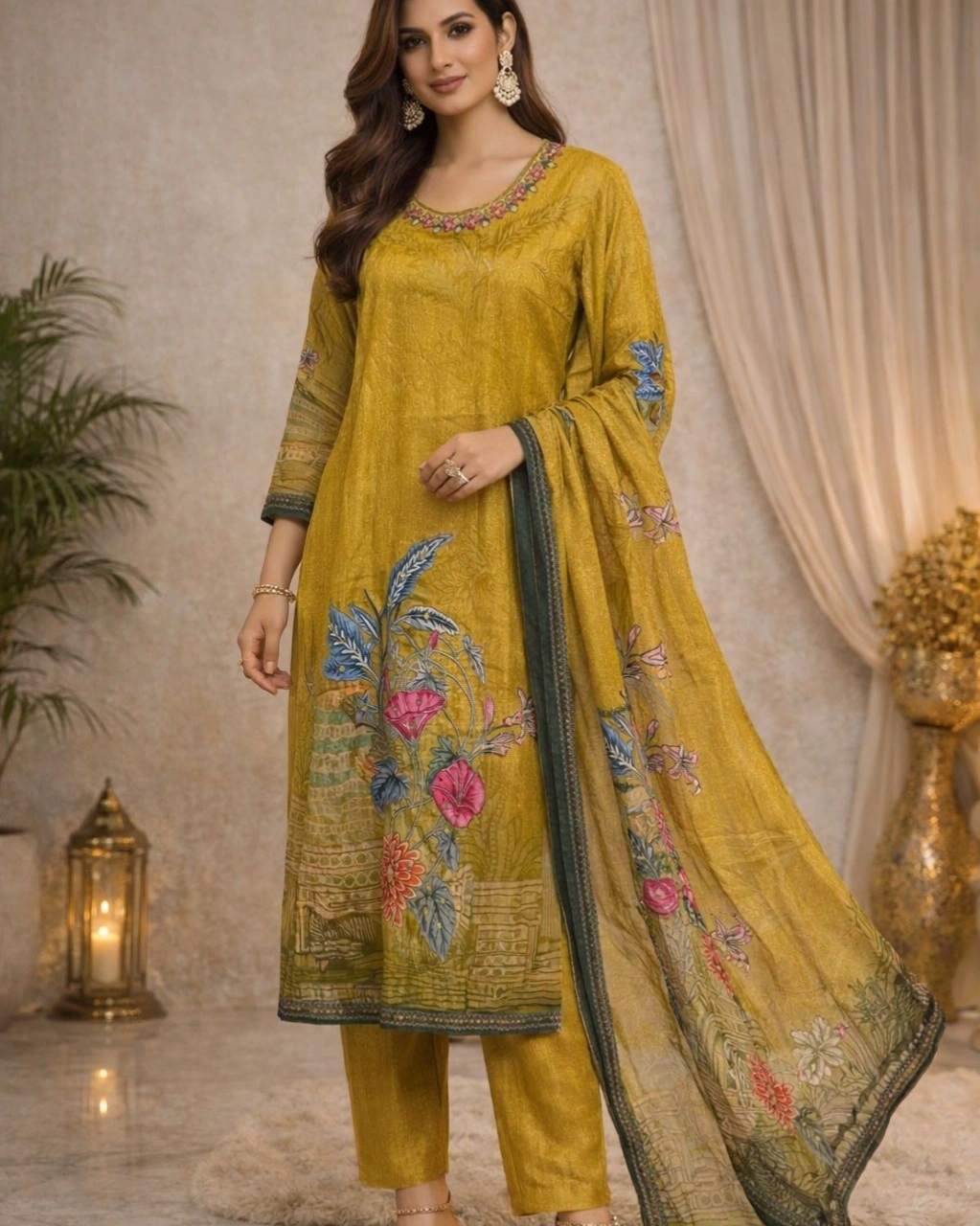Step into effortless grace with this stunning mustard kurta set by Blanxer. Designed with intricate floral prints and a rich ethnic vibe, this outfit blends traditional charm with modern sophistication. Paired with a matching dupatta and straight pants, it’s perfect for festive gatherings, casual outings, or elegant day wear.
