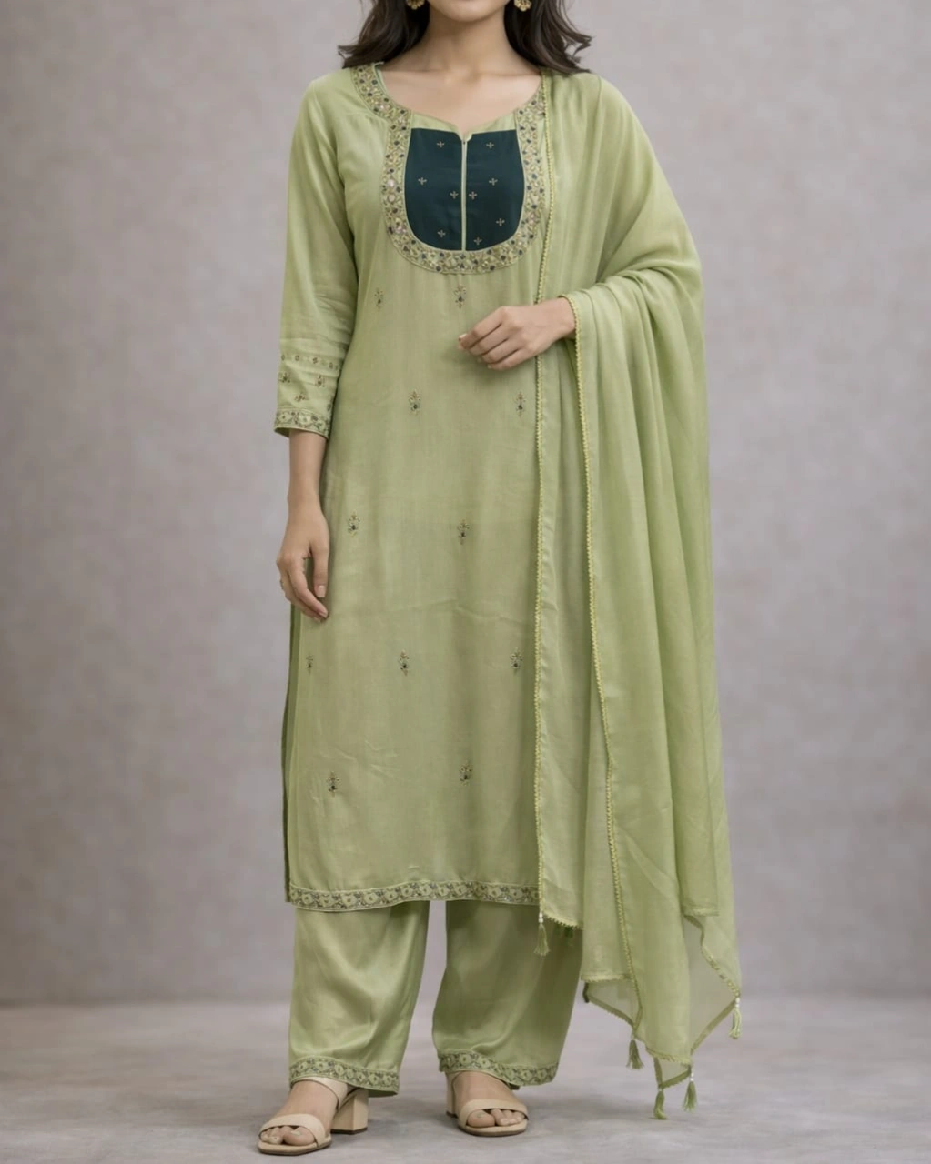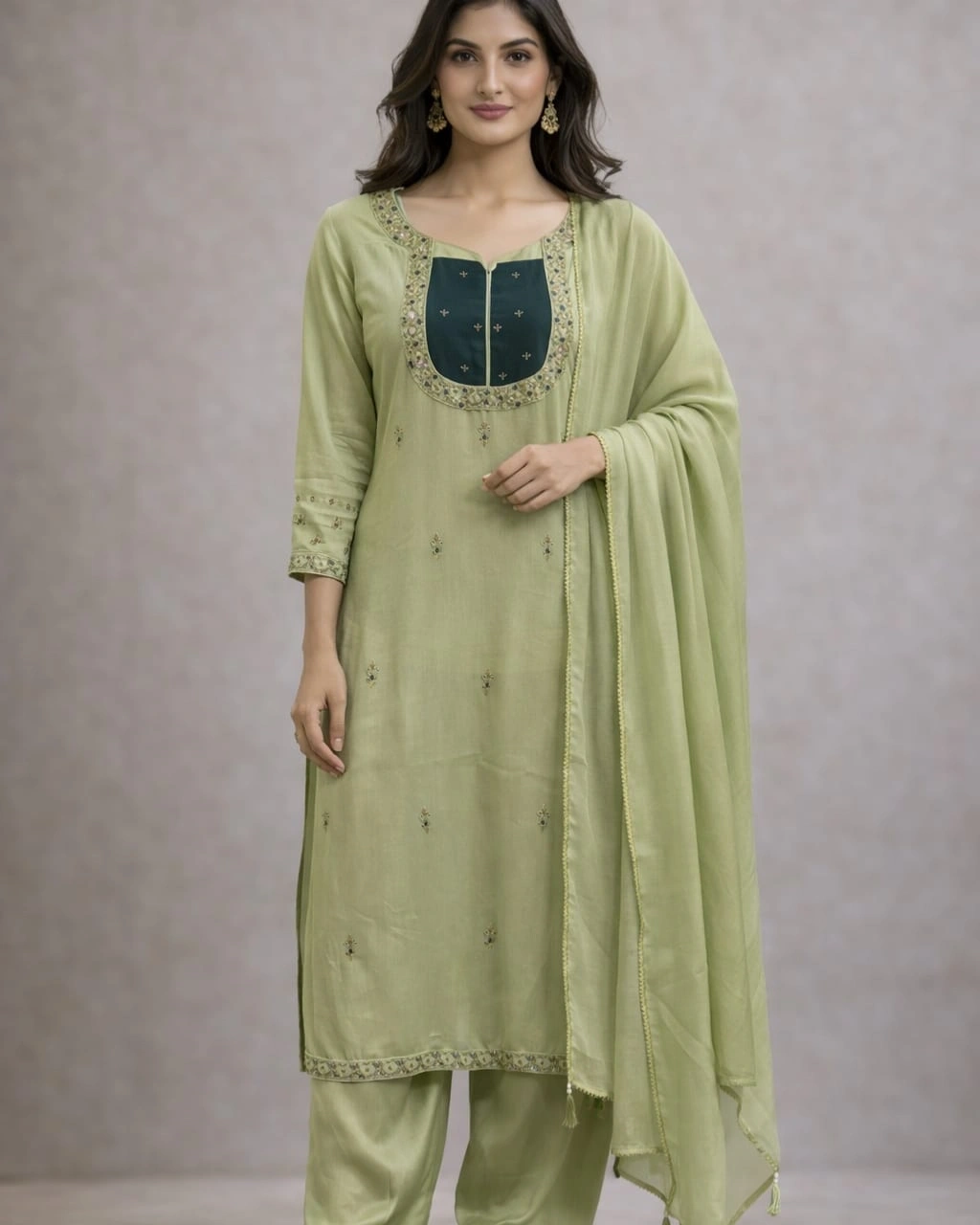 Elegant Pistachio Green Embroidered Kurta Pant Set with Designer Dupatta