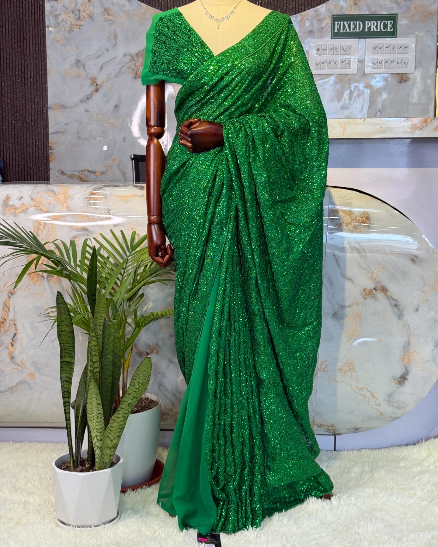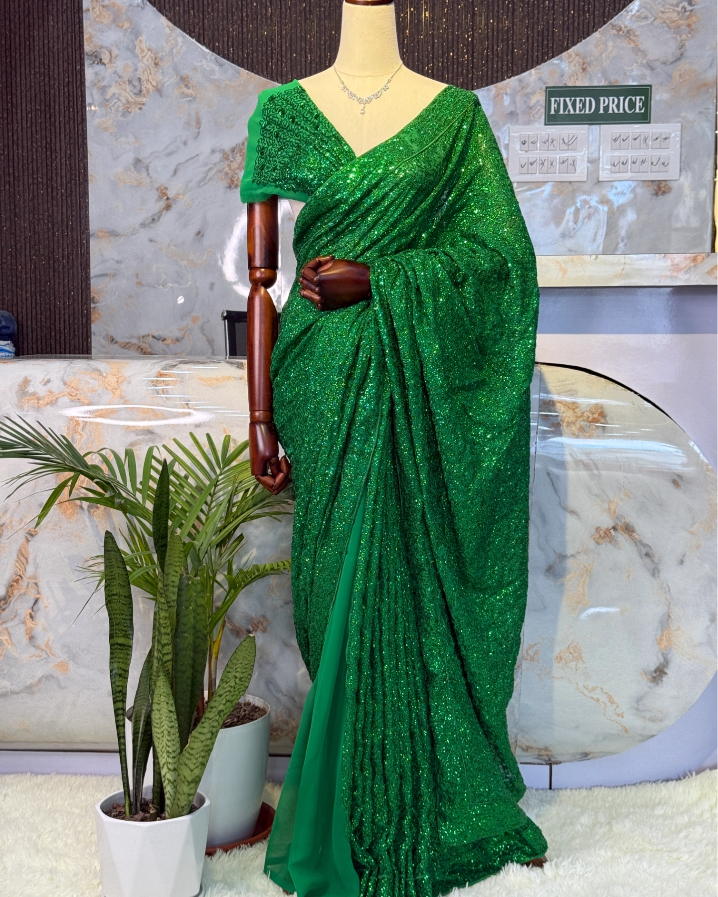 Full Sequin Embellished Saree with Elegant Blouse Design
