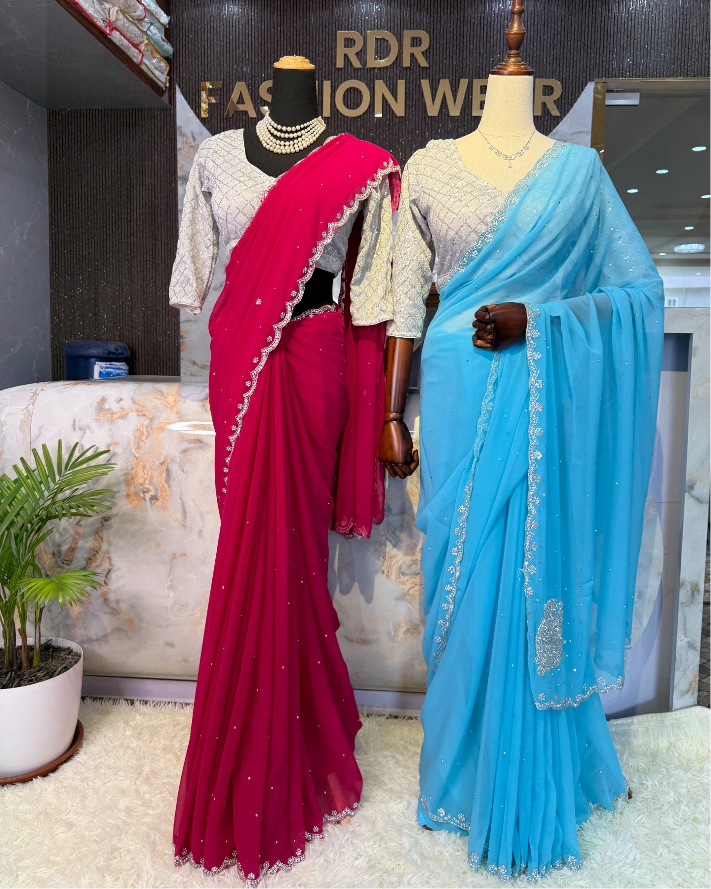 The bold Rani Pink shade gives a royal and glamorous look, while the delicate silver border adds elegance and shine.