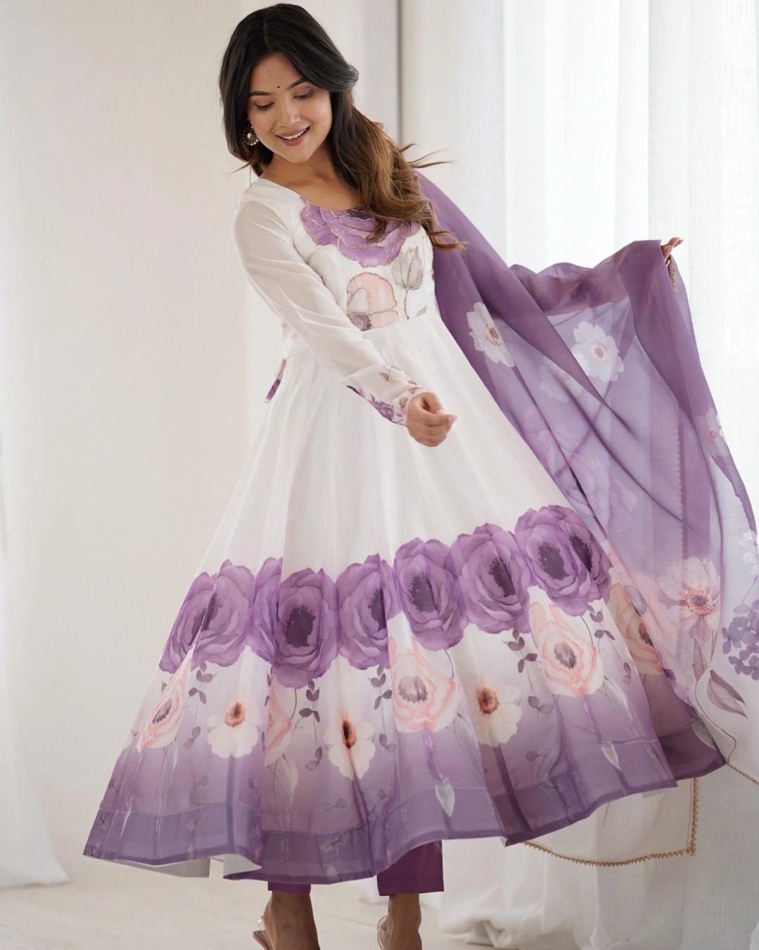 Product Name: Lavender Bloom Premium Anarkali Set