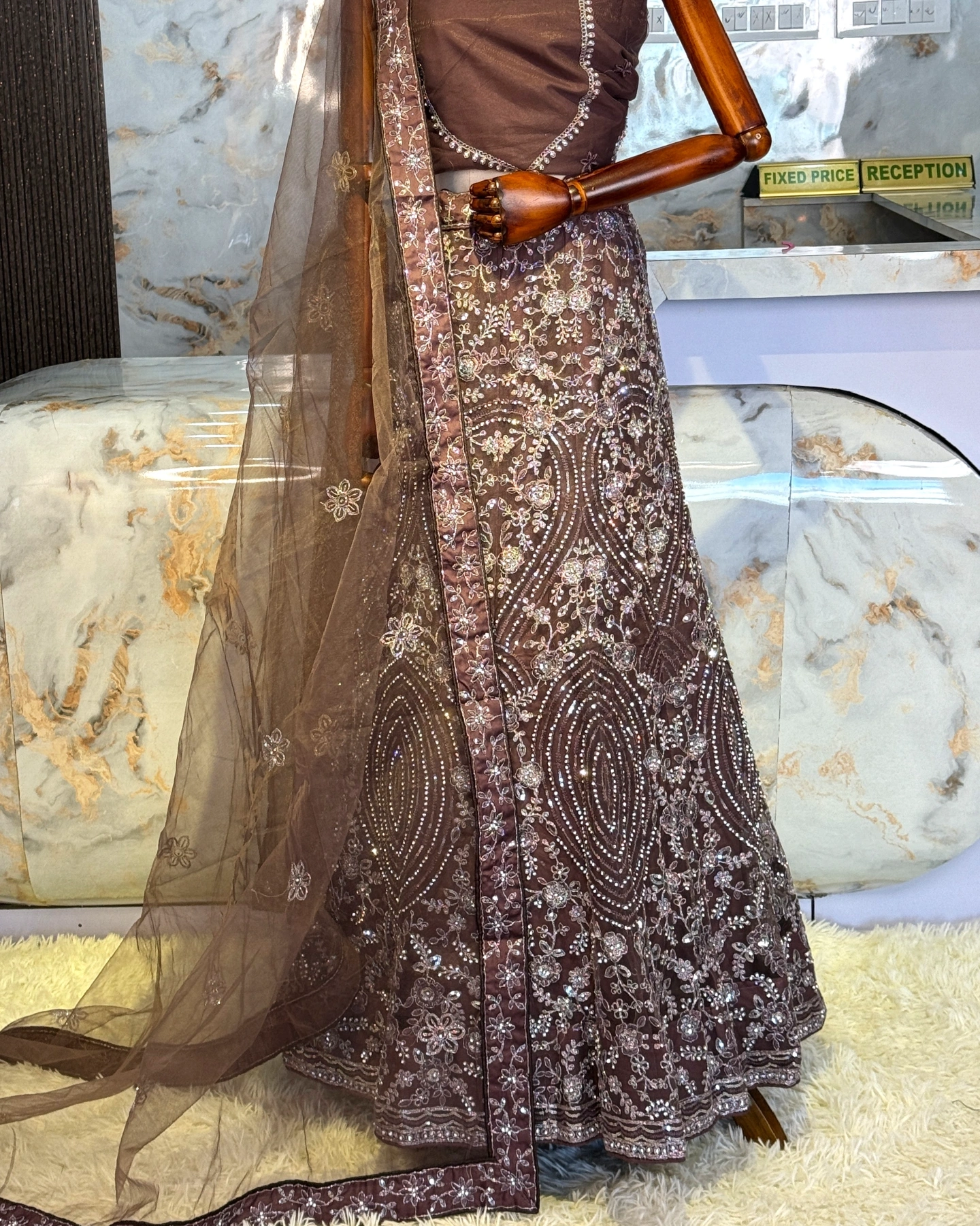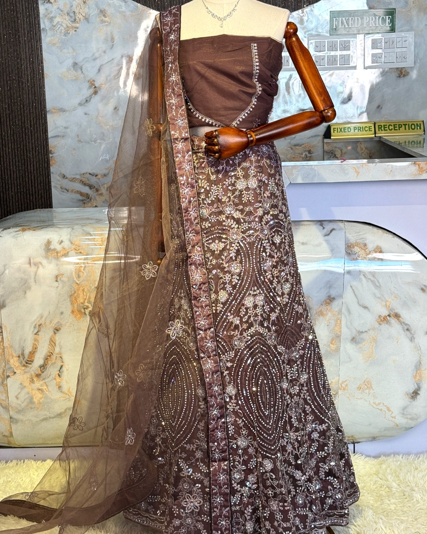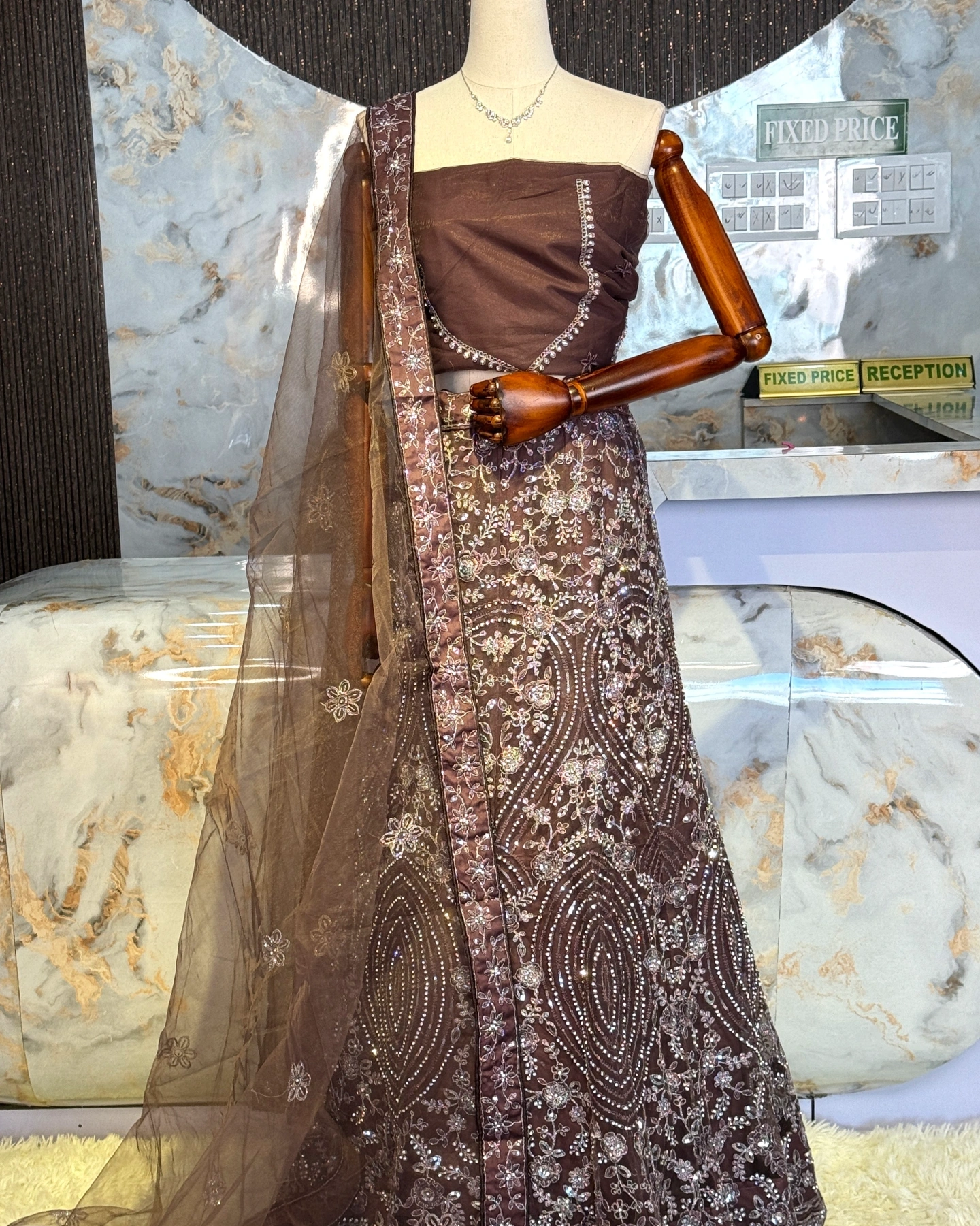 Royal Chocolate Brown Heavy Embroidered Lehenga Set