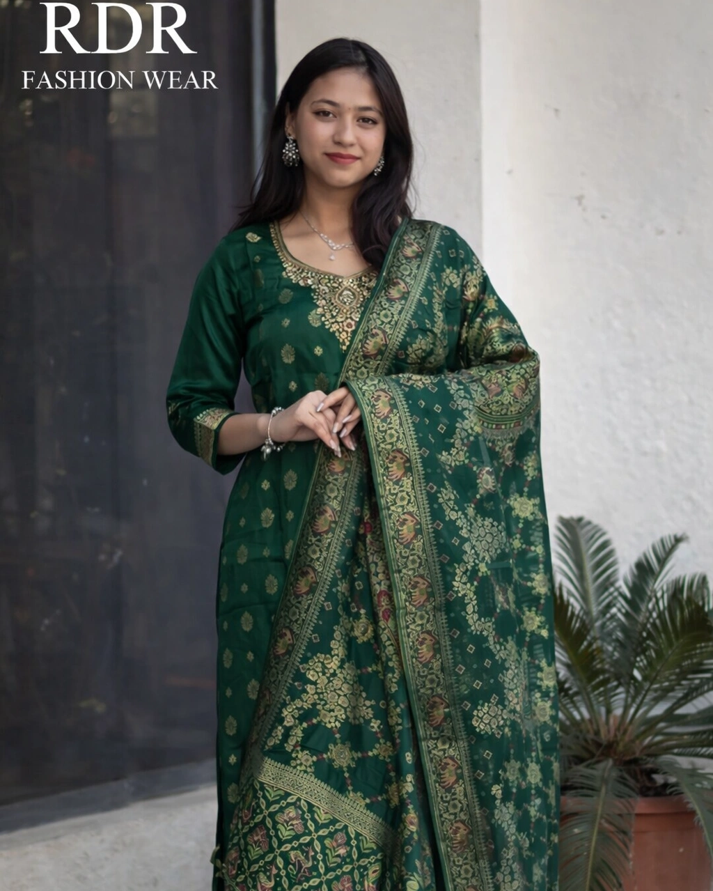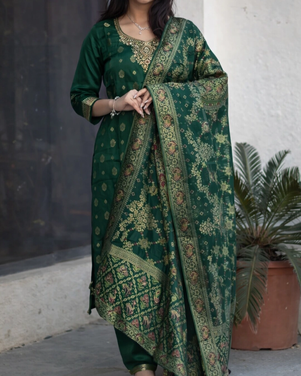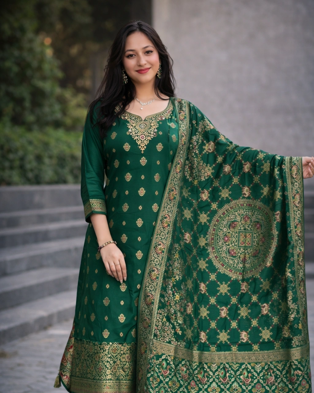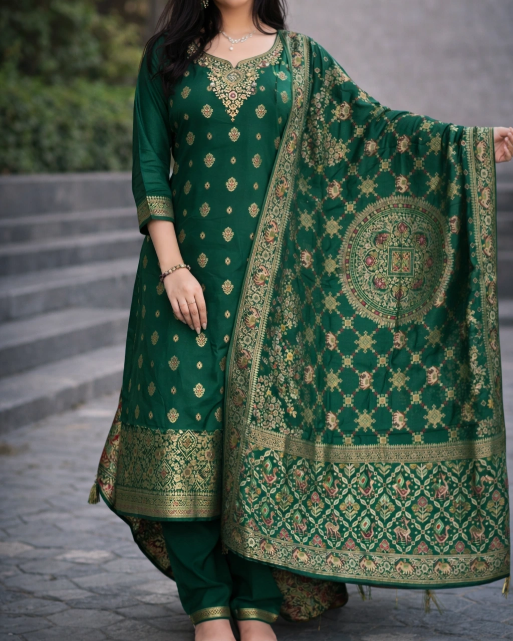 Product Name: Royal Green Embroidered Kurta Pant Set with Designer Dupatta