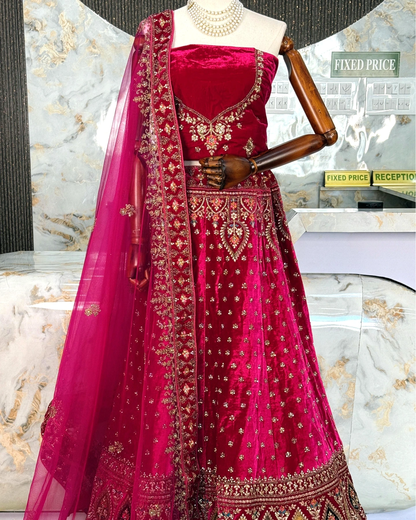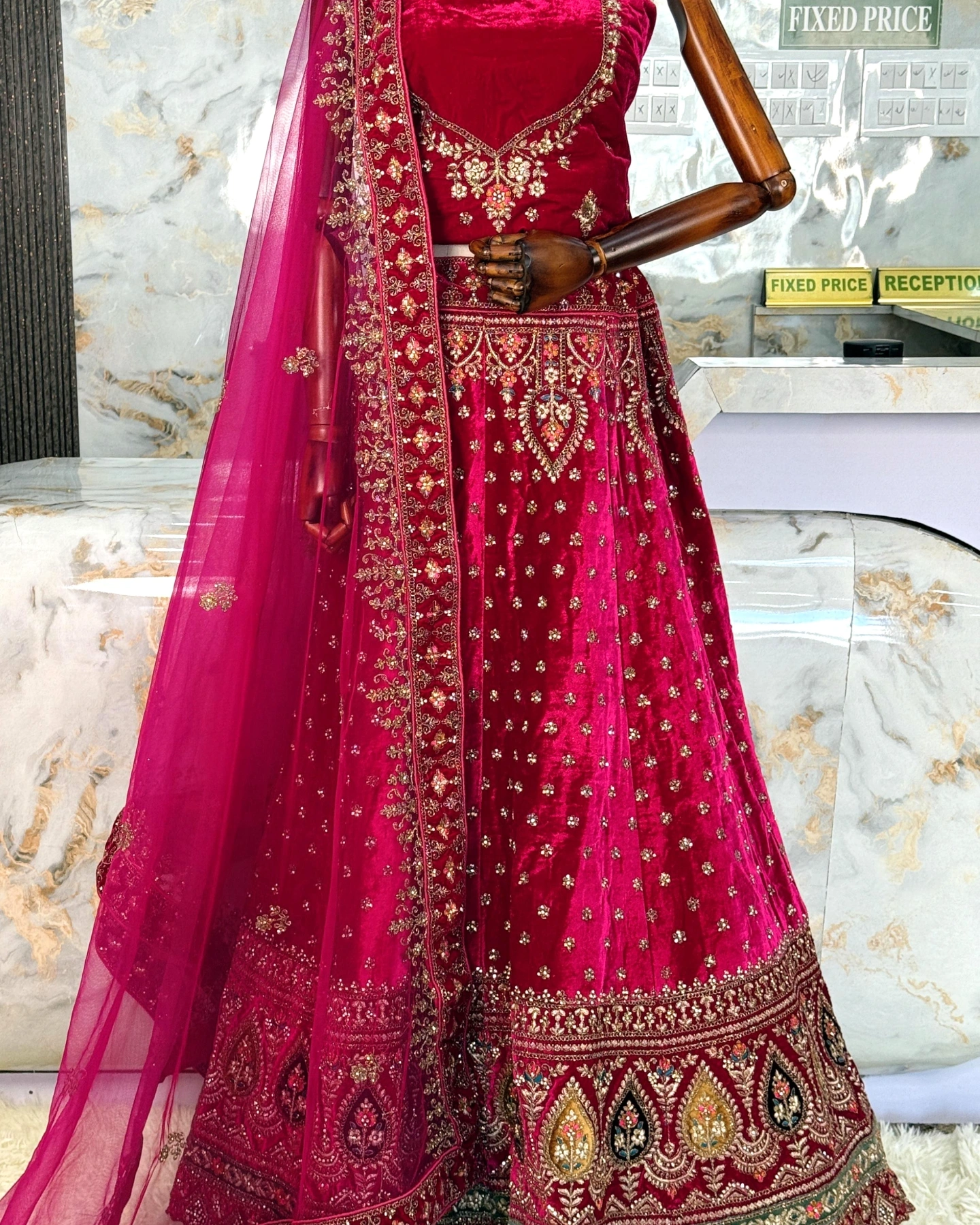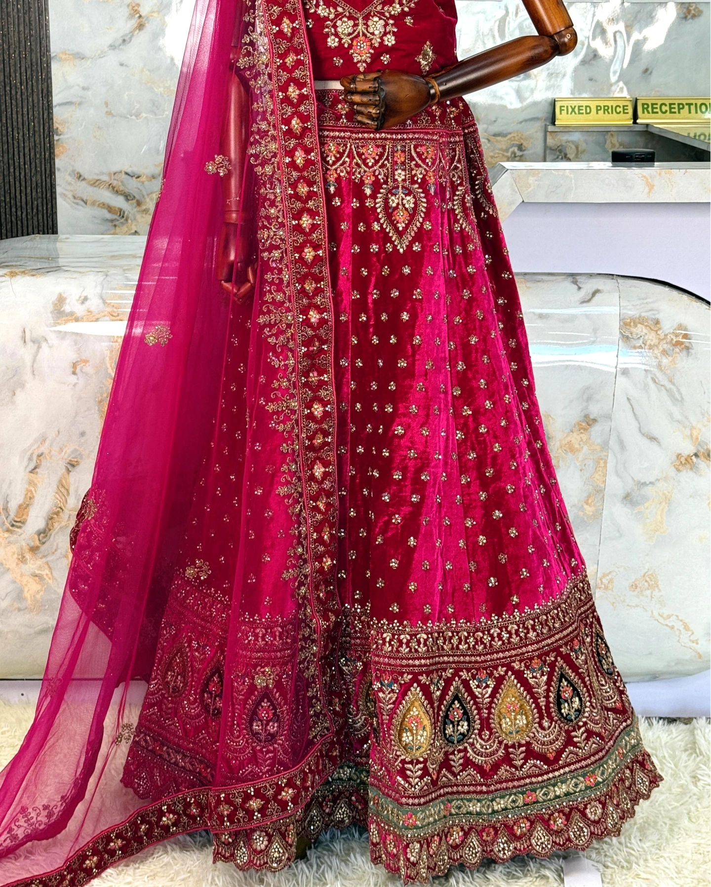 • Lehenga – Premium Velvet with Heavy Zari, Stone & Sequin Work