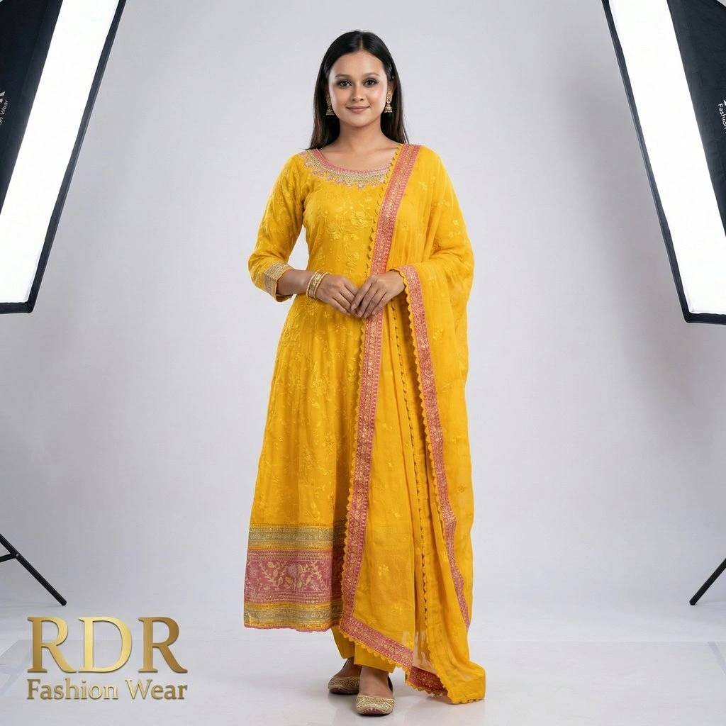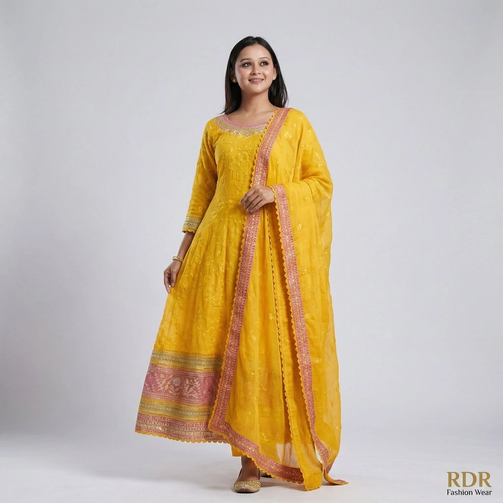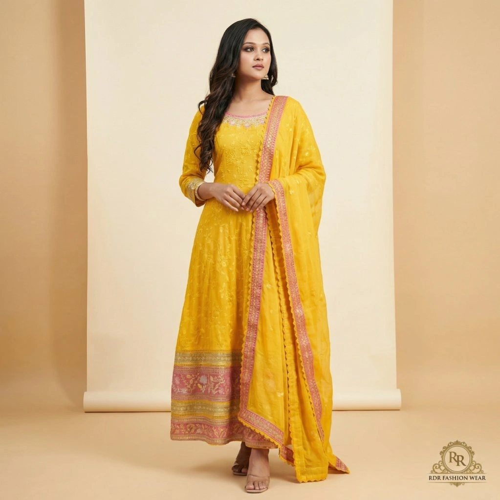 Product Name: Sunshine Yellow Embroidered Anarkali Set with Contrast Border