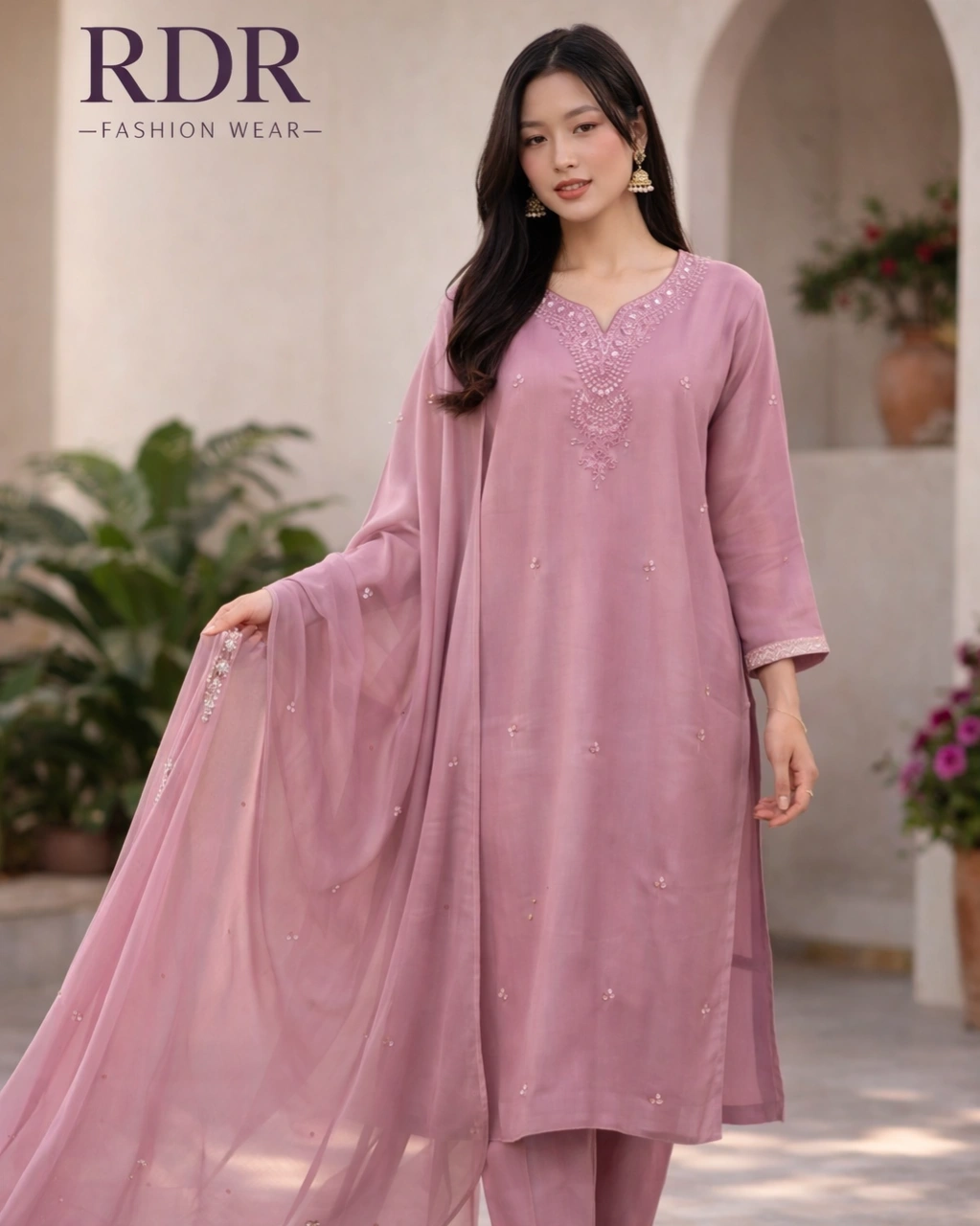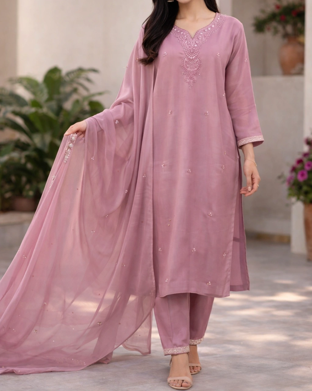 Product Name: Elegant Dusty Pink Embroidered Kurta Set