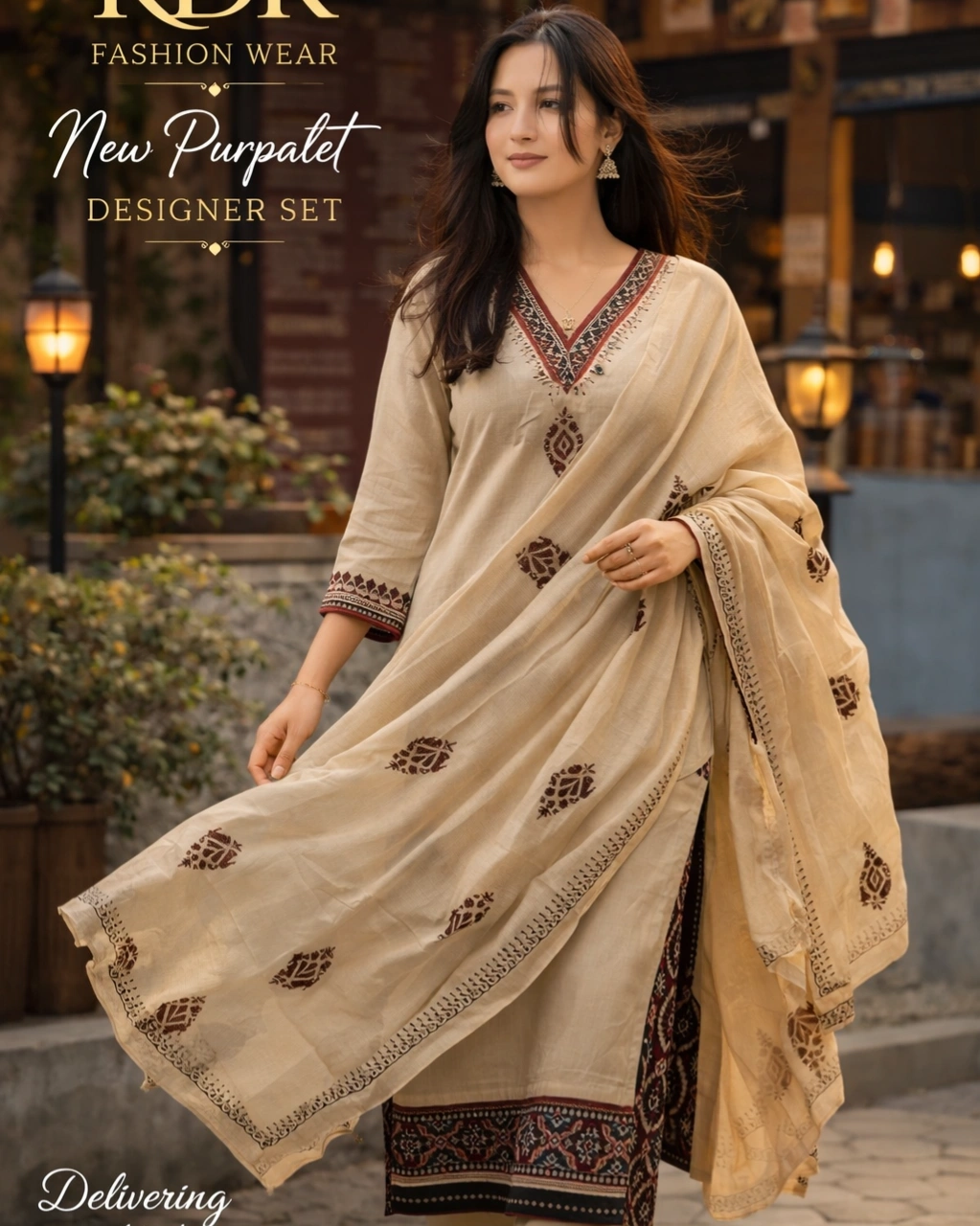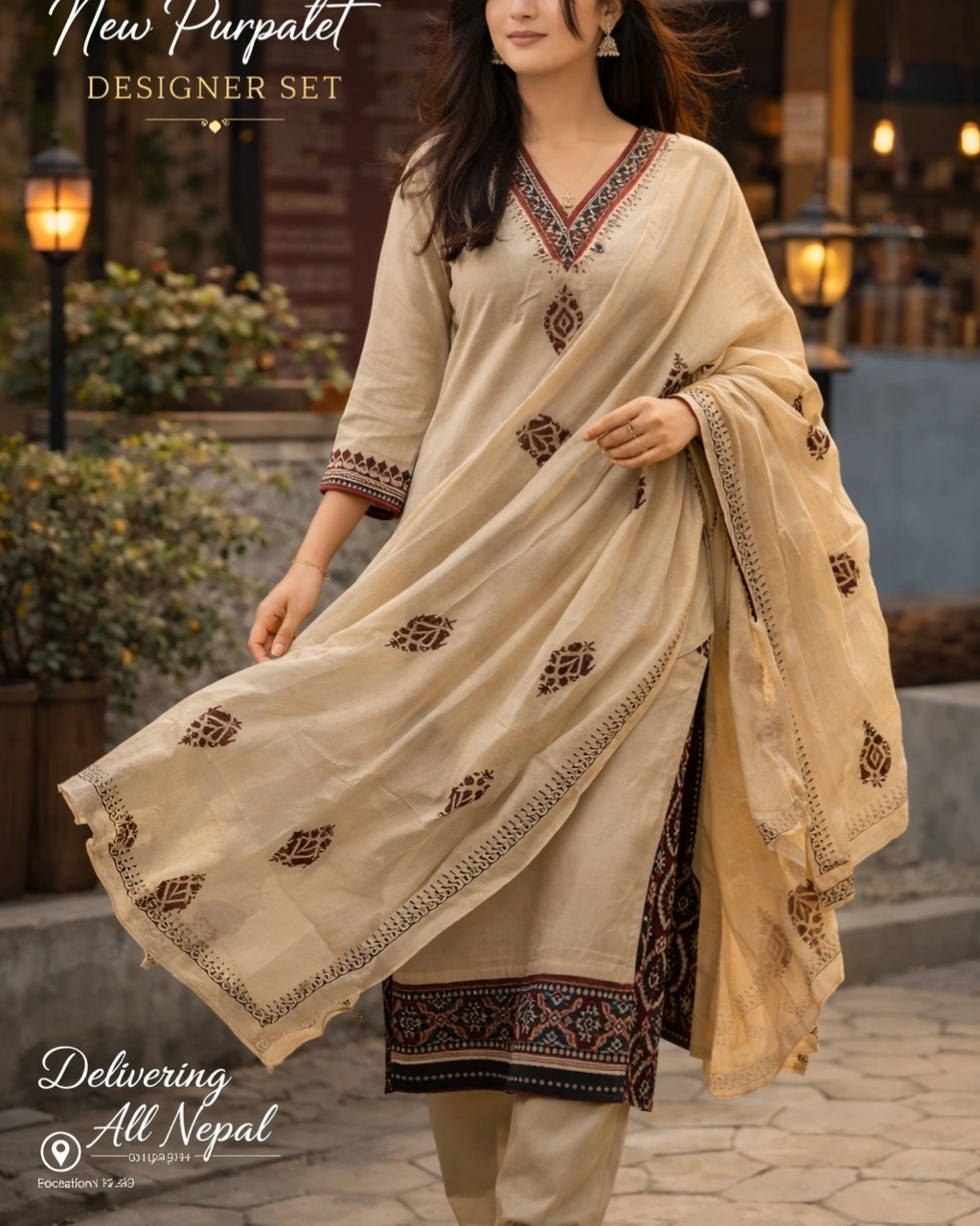 Product Name: Elegant Beige Ethnic Designer Kurtha Set