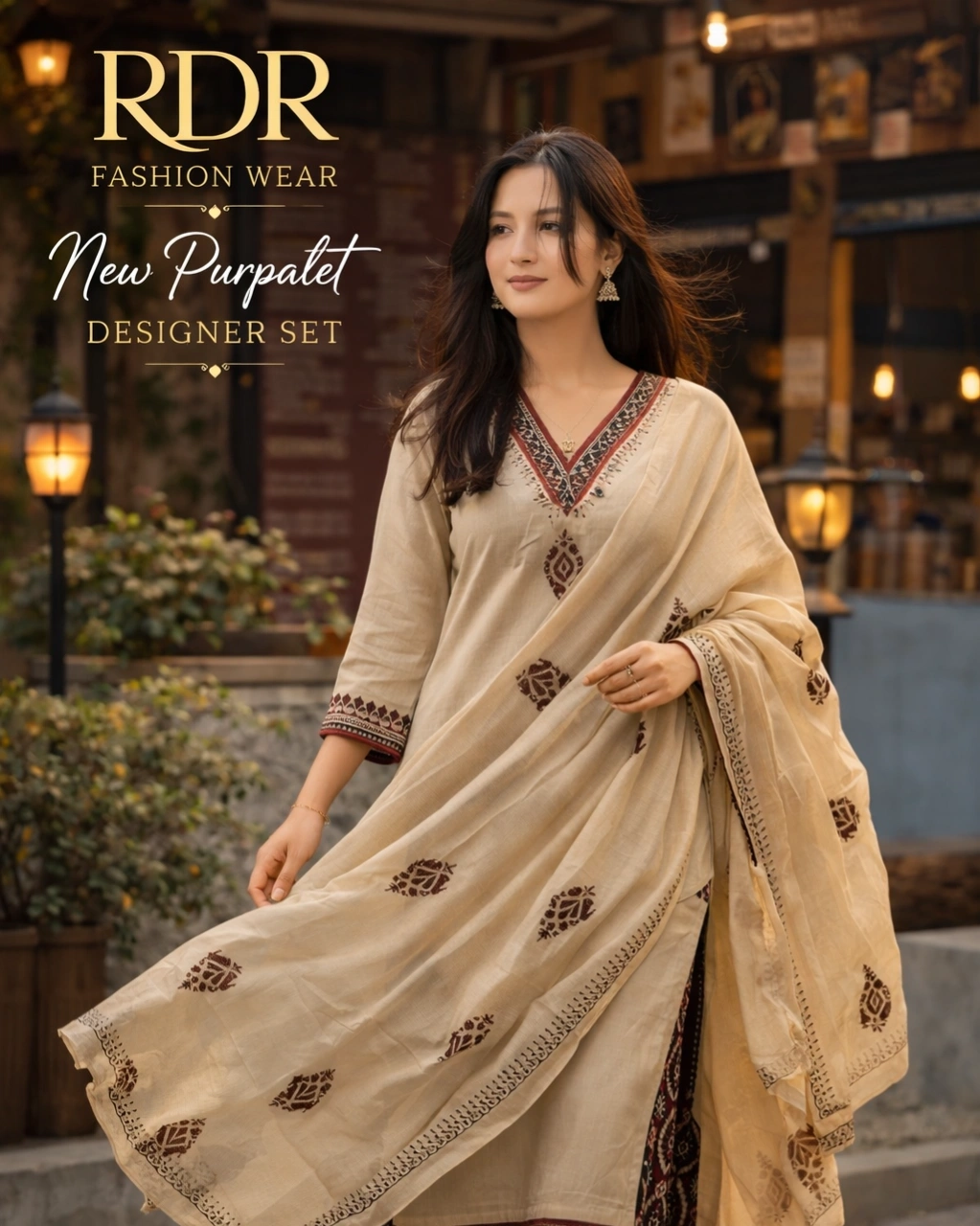 Work: Beautiful ethnic pattern detailing on the neckline with stylish traditional motifs across the kurtha. The hemline features elegant printed borders, and the lightweight dupatta comes with matching ethnic designs and decorative borders that enhance the graceful traditional look.