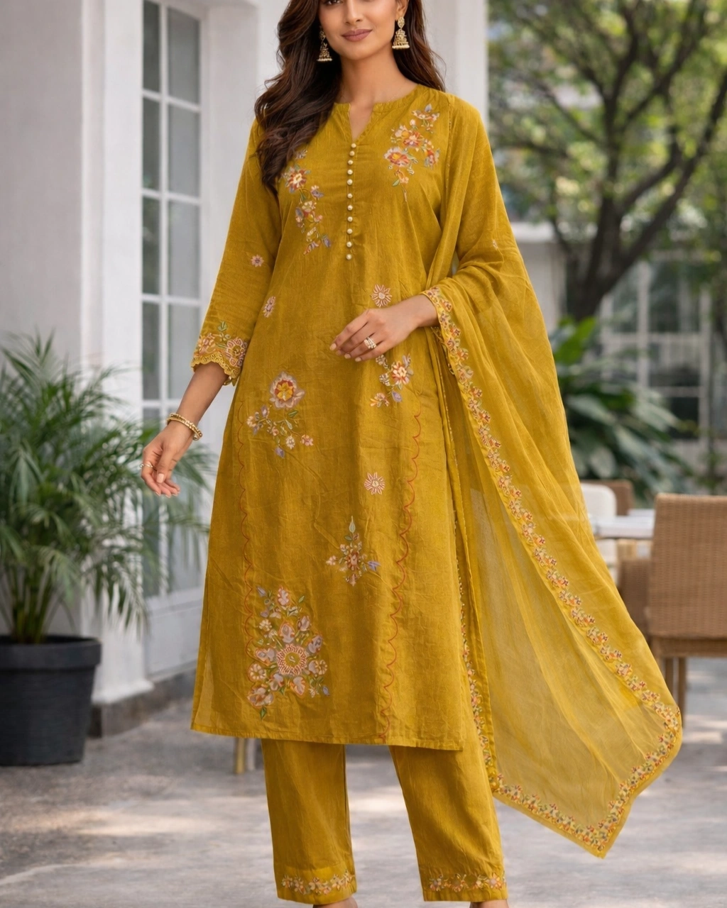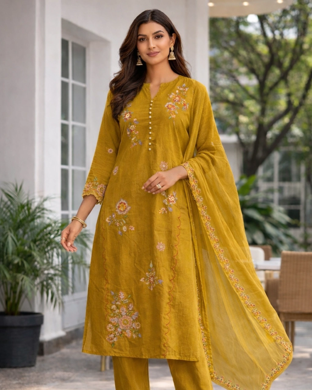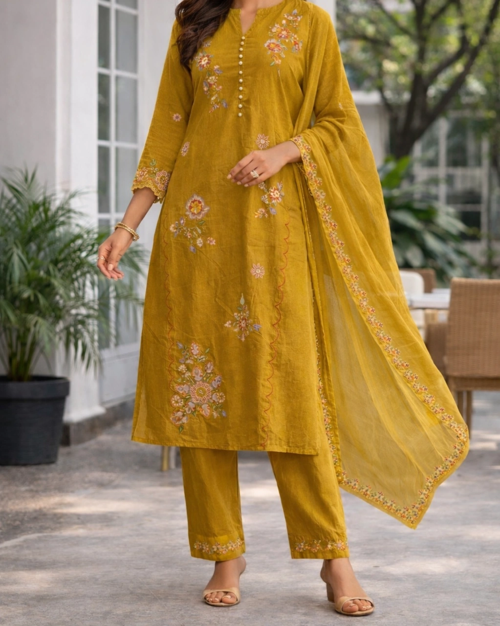 Style: Elegant ethnic wear ideal for festive occasions, cultural gatherings, daytime celebrations, and traditional events. The rich mustard tone combined with intricate floral embroidery creates a graceful and timeless look.