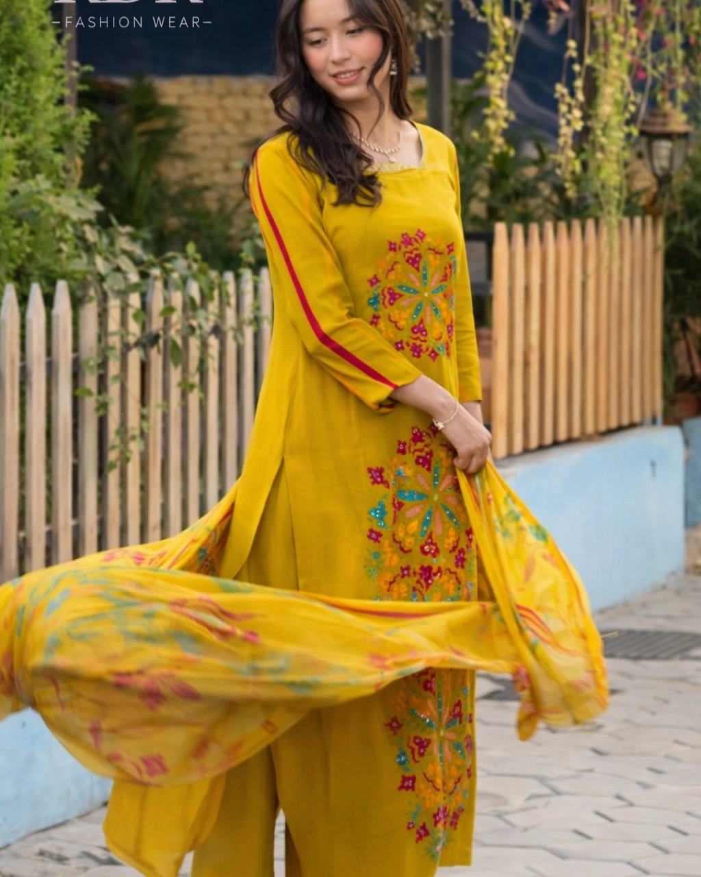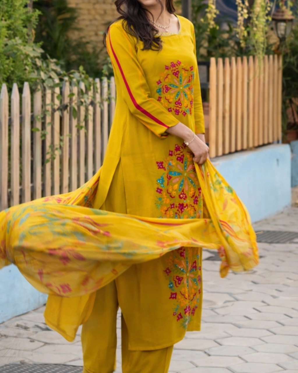 Product Name: Elegant Mustard Yellow Embroidered Kurta Set