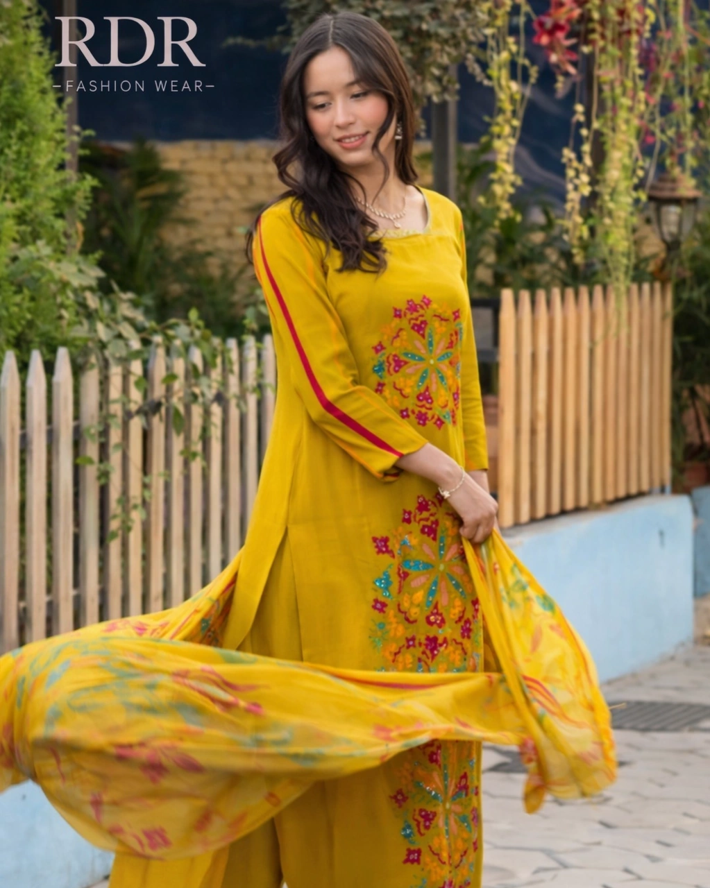 Beautiful multicolor floral embroidery work on the front panel of the kurta, enhanced with delicate thread detailing and vibrant patterns. The lightweight printed dupatta adds a graceful and stylish touch.