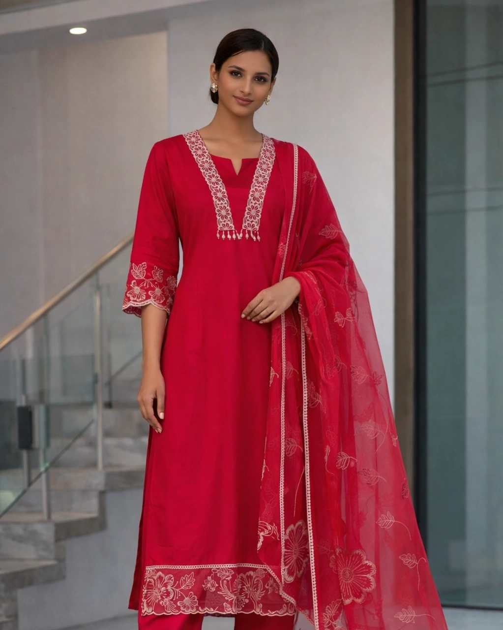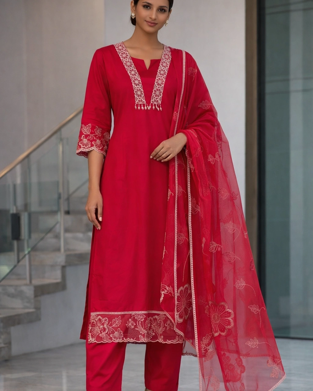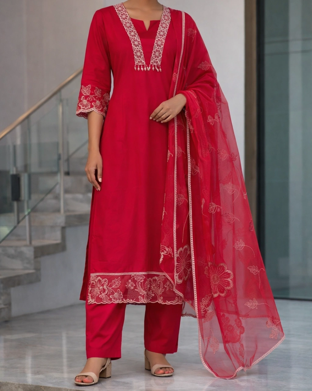 Style: Elegant ethnic wear perfect for festive occasions, celebrations, traditional events, and special gatherings. The vibrant red shade combined with delicate embroidery creates a timeless and sophisticated appearance.