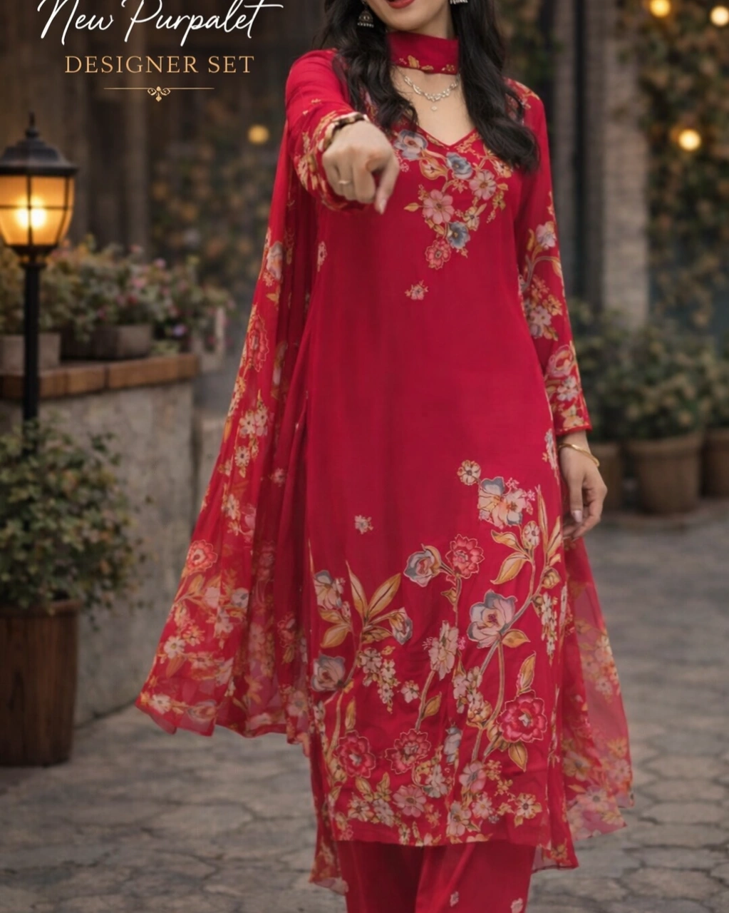 Product Name: Elegant Red Floral Designer Kurtha Set