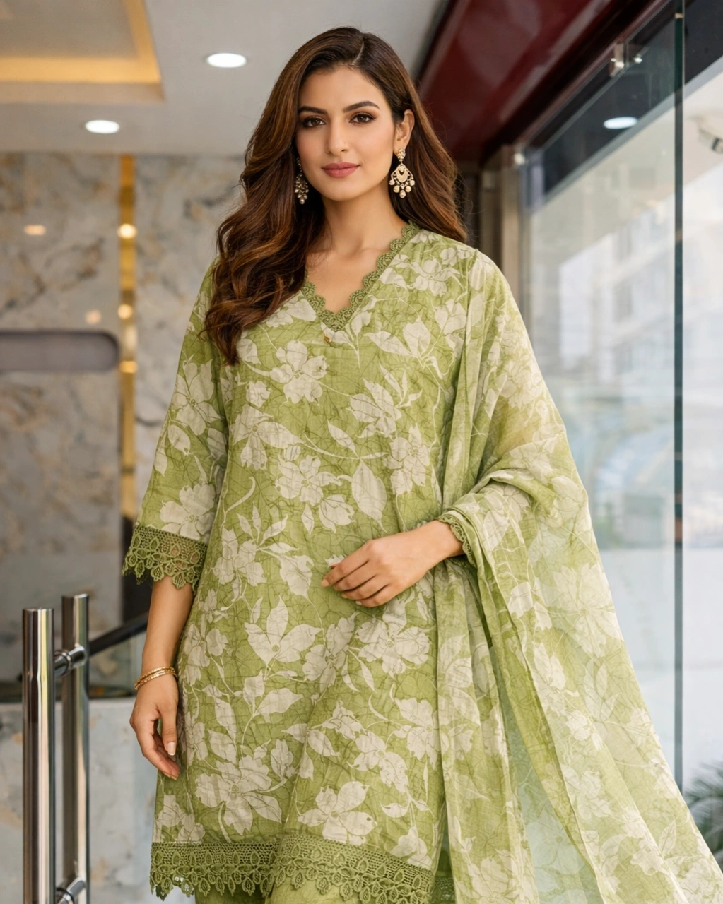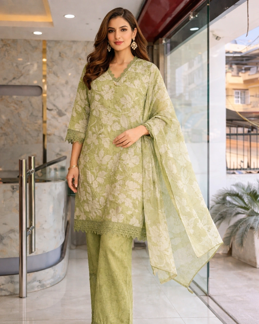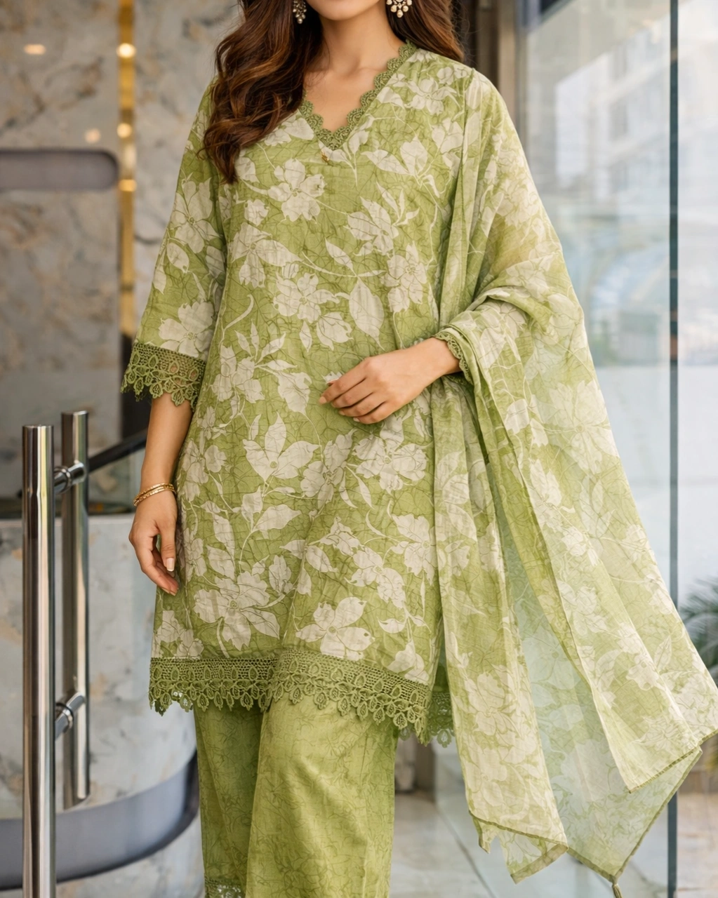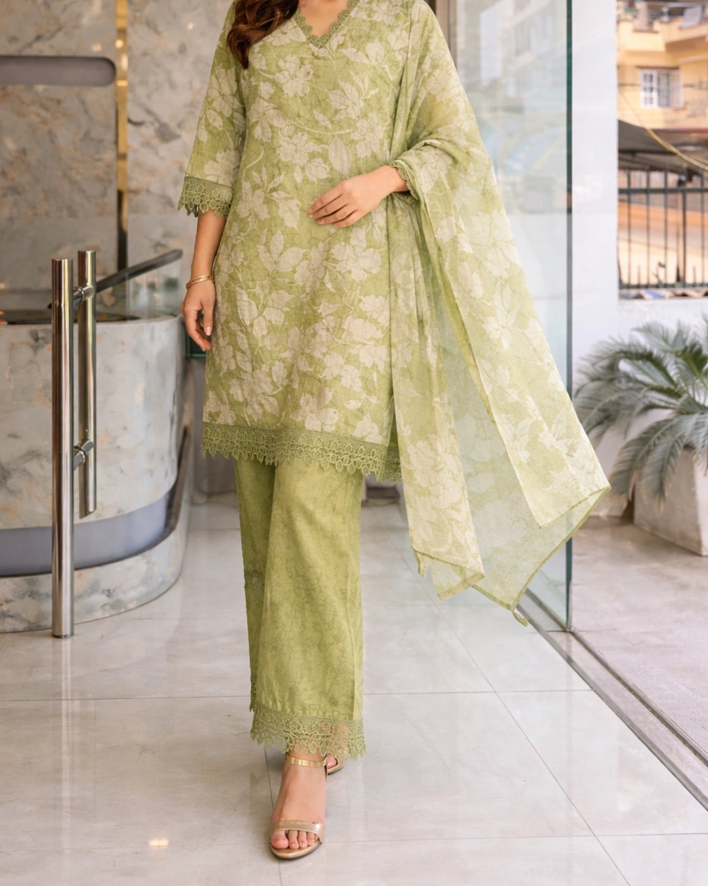 Style: Elegant ethnic outfit perfect for festive occasions, casual gatherings, office wear, and daytime celebrations. The soft sage green tone combined with subtle floral patterns creates a fresh and sophisticated traditional look.