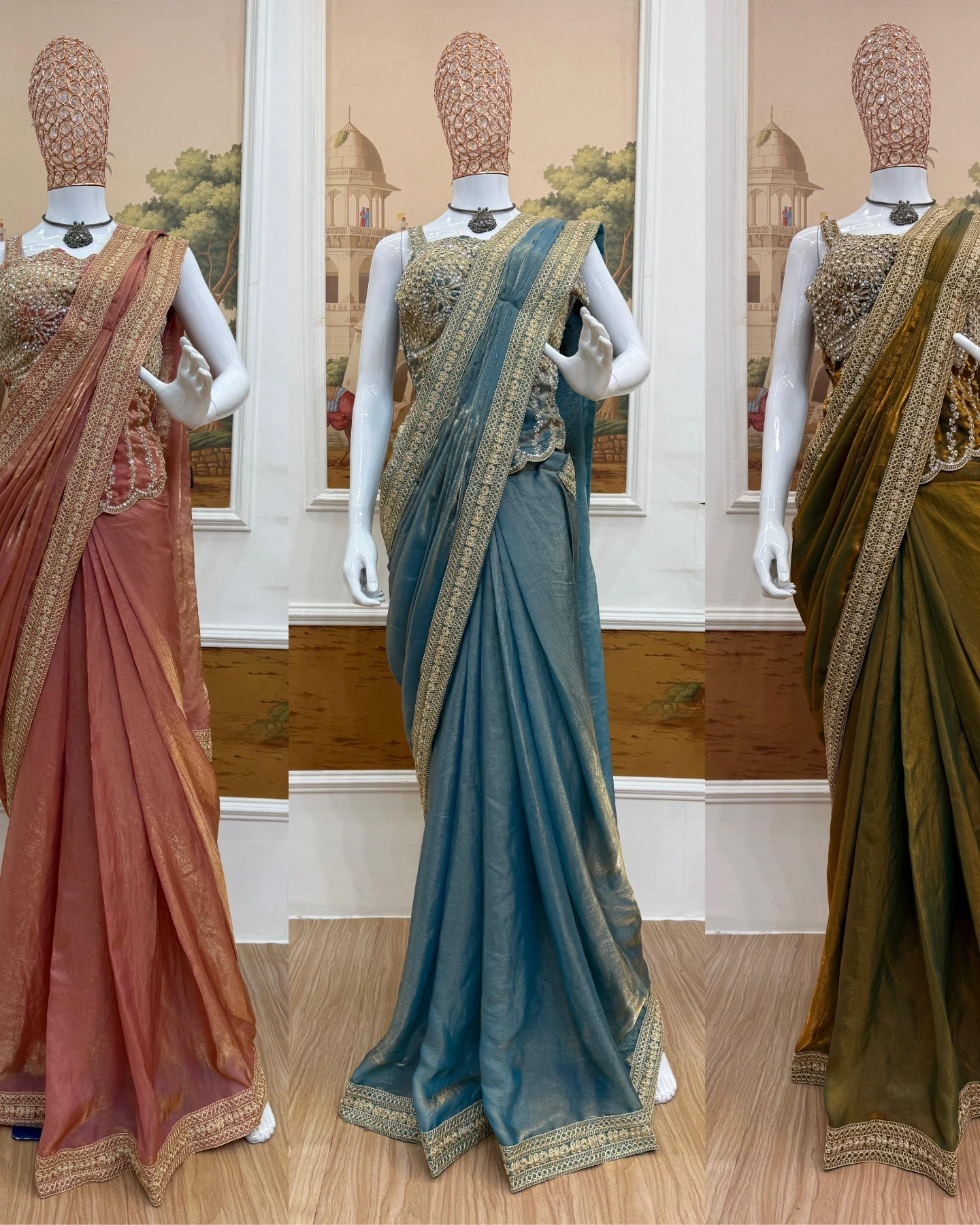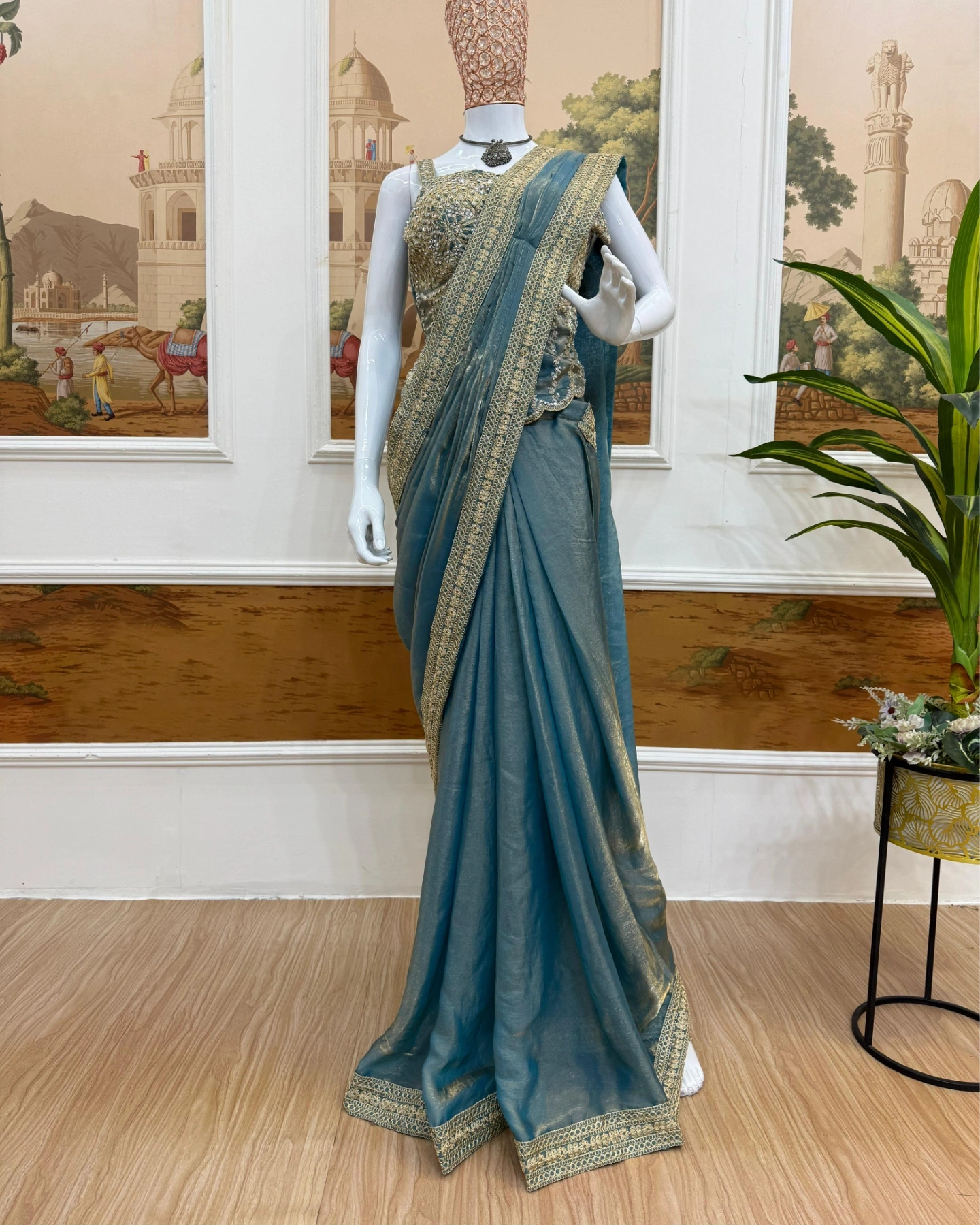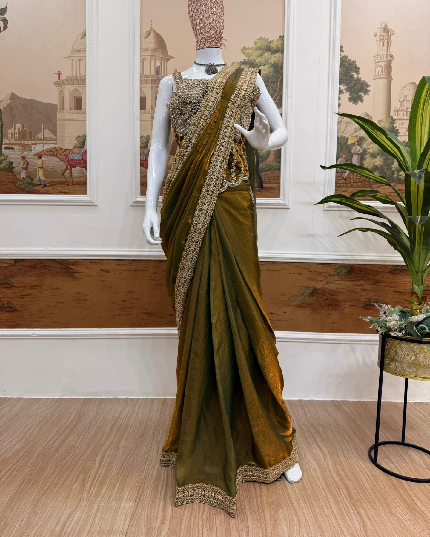 Pair it with statement earrings, soft curls, and golden heels for a complete royal look.
