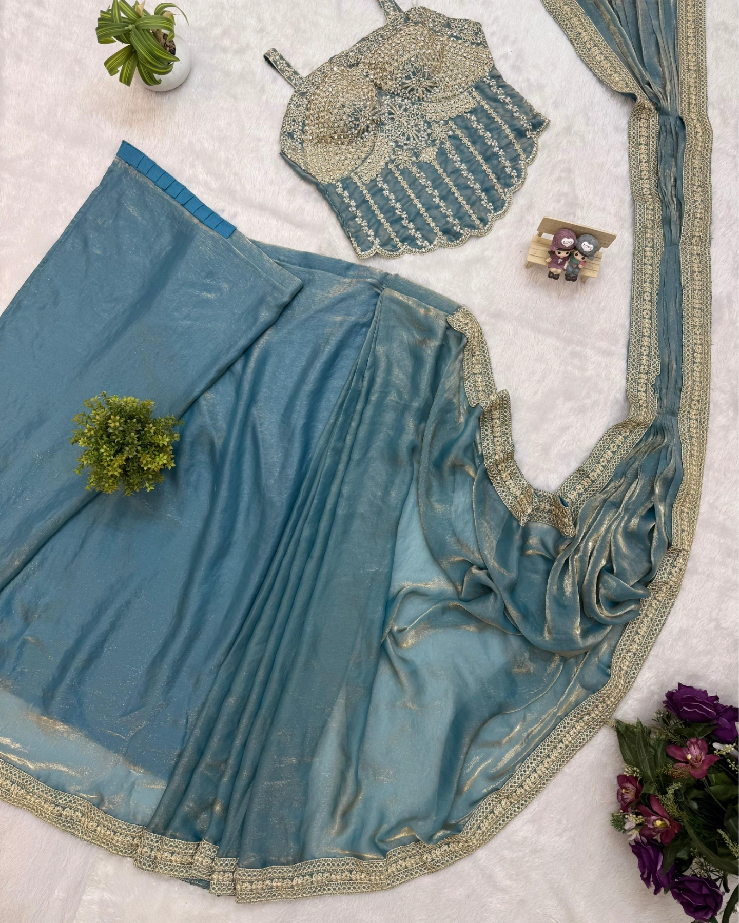Blouse: Premium Silk Blend with Heavy Handwork