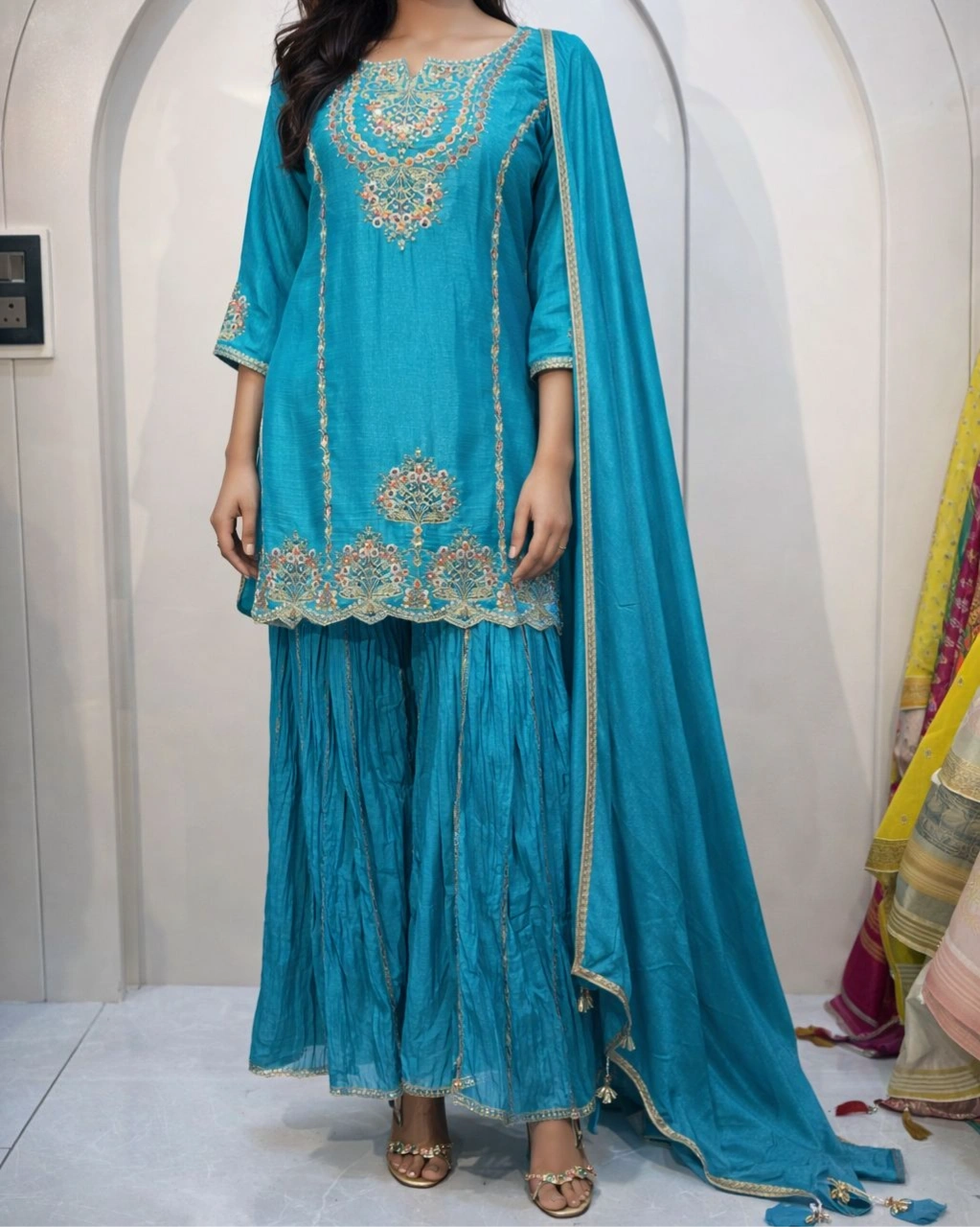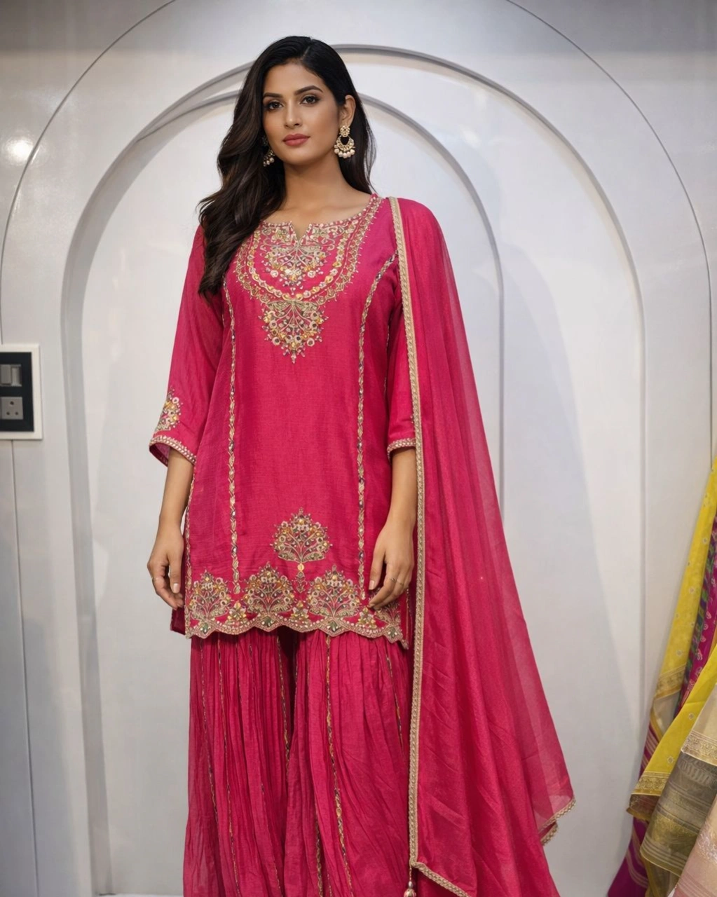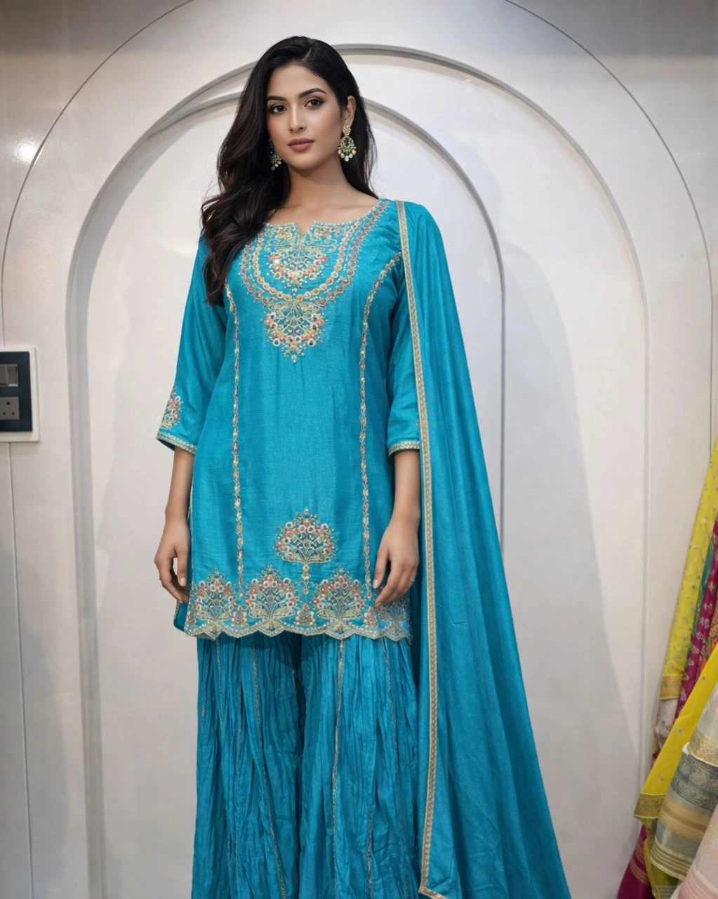 • Kurta: Premium Silk Blend / Chanderi Finish