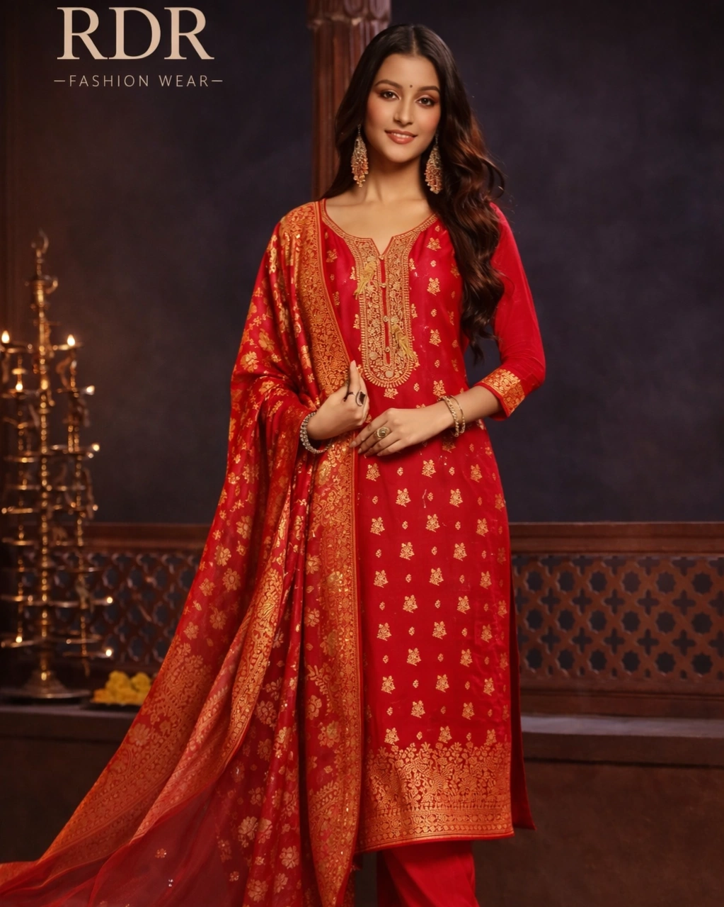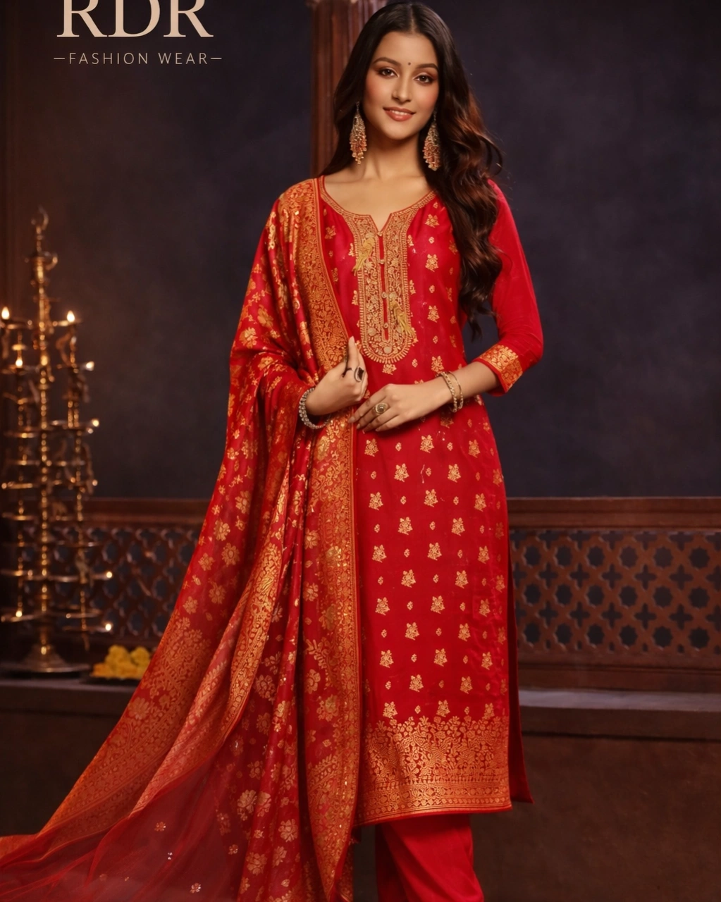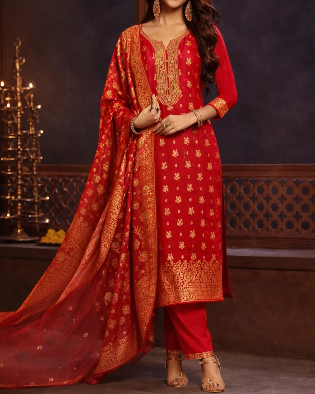 Product Name: Elegant Red Golden Embroidered Kurta Set