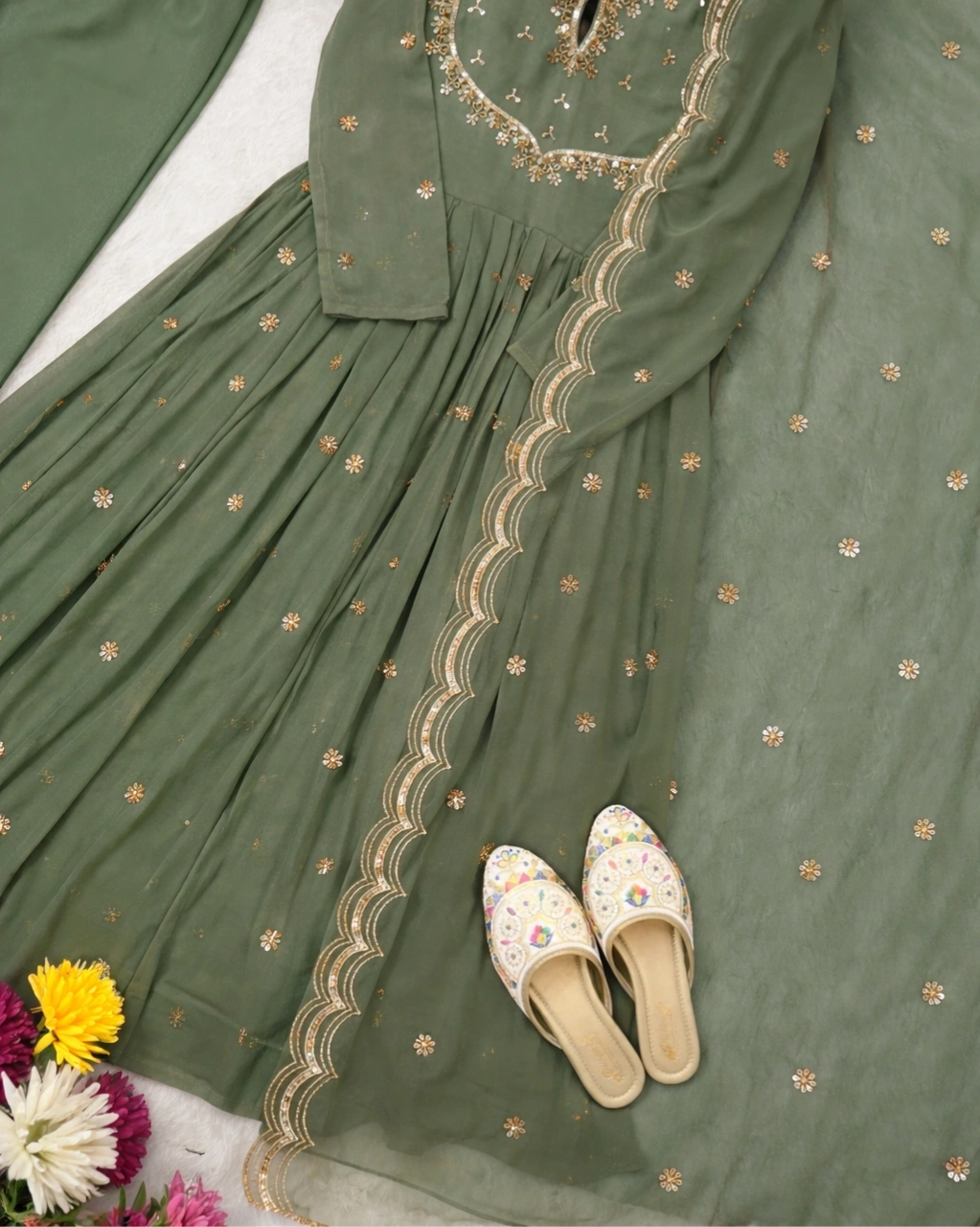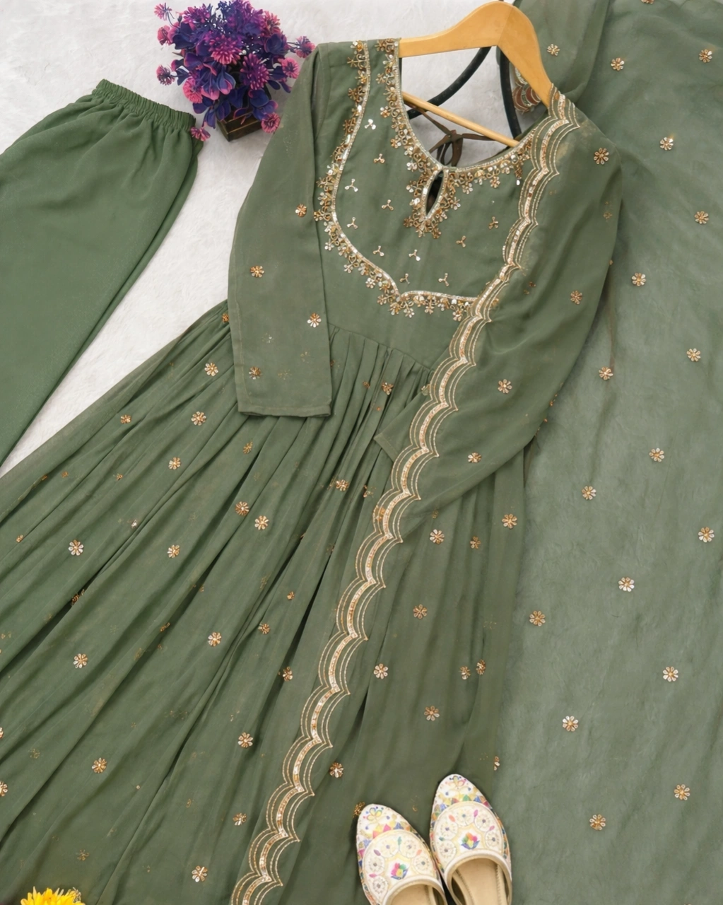 Product Name: Classic green Golden Embroidered Anarkali Set